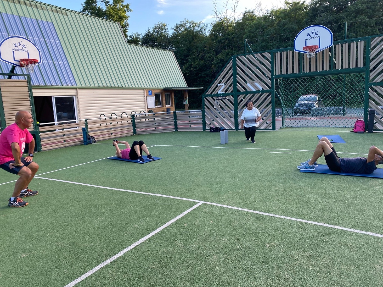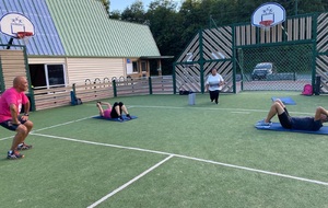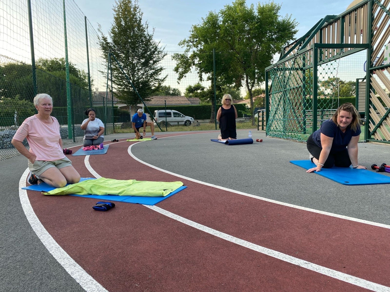 Quand il fait chaud, gym à l'extérieur proposée par nos animatrices Rachel et Virginie