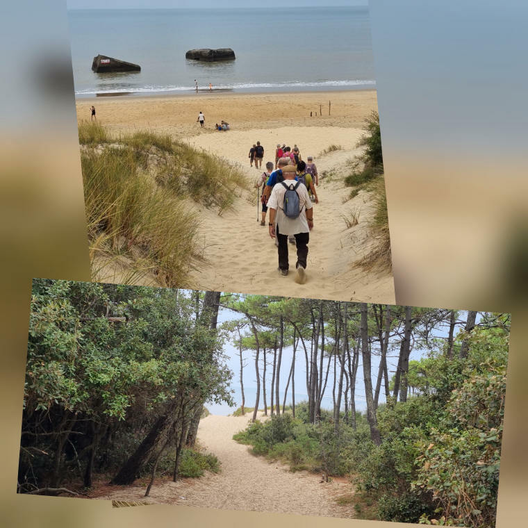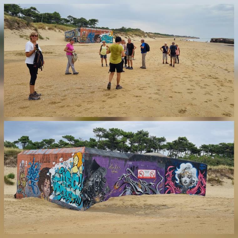 Nous nous dirigeons vers les Combes à Garrot, à la Barque et à la Vache. Passés la tranchée des Combots et derrière le Flandre (et oui encore un très bon restaurant) nous franchissons une des dunes de la très grande Plage de la Grande Côte. Ici, des casemates baignent dans la mer et d'autres bunkers allemands attendent leur tour.
