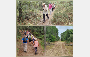 Par les sentiers on s'enfonce dans la forêt de la Coubre pour atteindre la Borne à Gravaude (citerne anti incendie). Pause passée, nous traversons avec prudence la D141 très fréquentée en ce moment et entrons dans la forêt des Combots d'Ansoine.