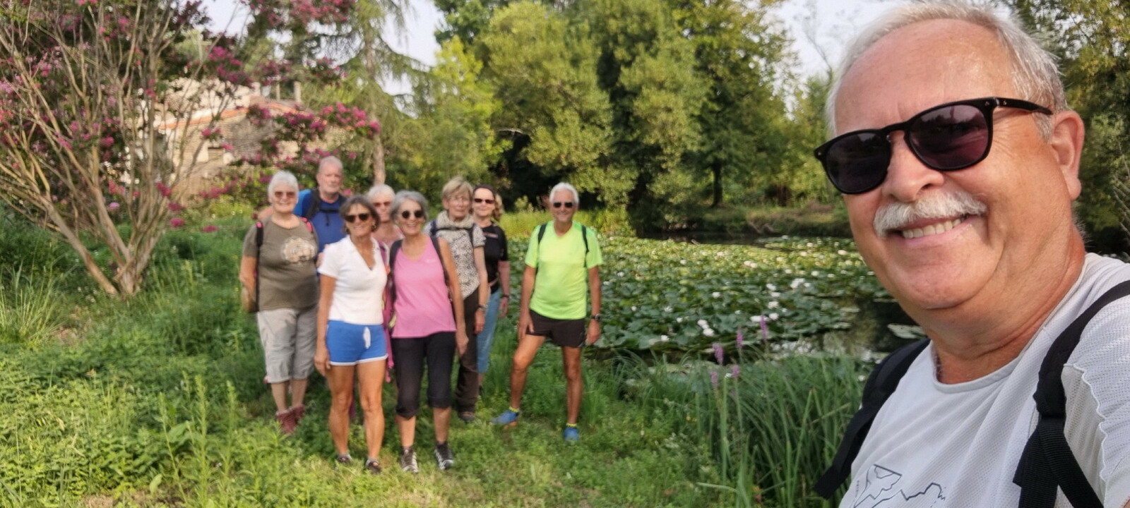 Nous faisons un selfie à côté d'une mare aux nénuphars de la rivière de Mirolle au mignonnet lieu-dit Chauvin.
