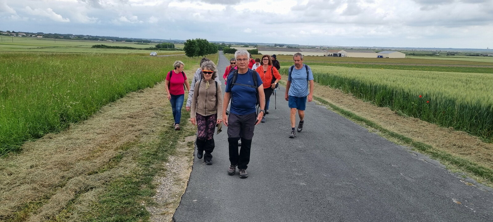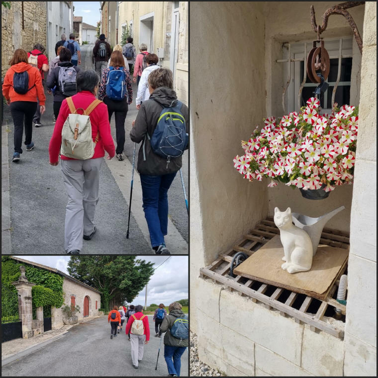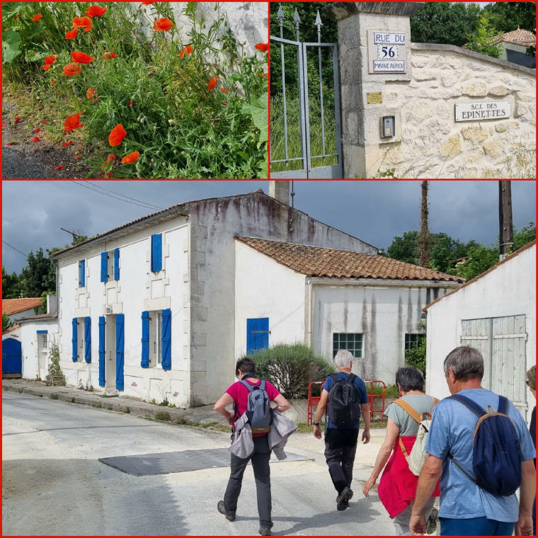 Serge nous emmène de bon pied dans Chaillevette. En partant du port de Chatressac, la rue du porche, celle l'Au Sur, nous parvenons dans les champs agricoles des Combes et rejoignons les Grandes Versennes puis Beauregard. Direction Les Auriaux, l'allée des Dames, Les Epinettes.