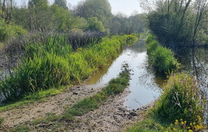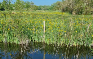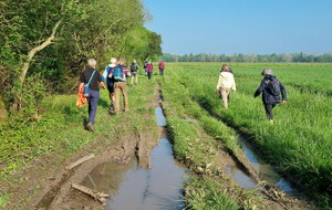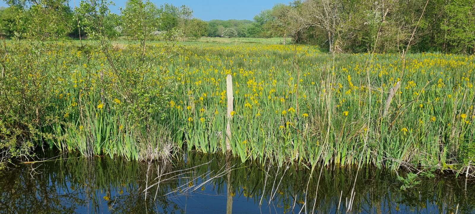 Enfin, nous partons pour s'arrêter attendre Miss DGA qui lutte avec les chausses qui appartiennent à son bonhomme😂😂😂. Et bé voilà, une fois ajuster à ses pieds, nous quittons le village à la rencontre de sa contrée par la rue de la Libération, ses chemins encore gorgés d'eau, de boue et ceux goudronnés servant à décrotter nos souliers. Chemin de la Blague du Monde, celui de la Pirouette, la Sarmazelle, le Domaine équestre La Rivière des Carlefours, les Chaumes où l'on a jamais vu autant d'iris jaune.