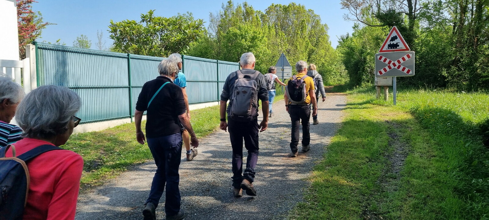 Un râteau rue de la Pile proche de la déchèterie communautaire, la rue de l'Estrade où nous traversons de nouveau la voie de chemin de fer du train des Mouettes et une belle photo de groupe à l'aire de jeux des gamins finalisent cette souple et belle randonnée.