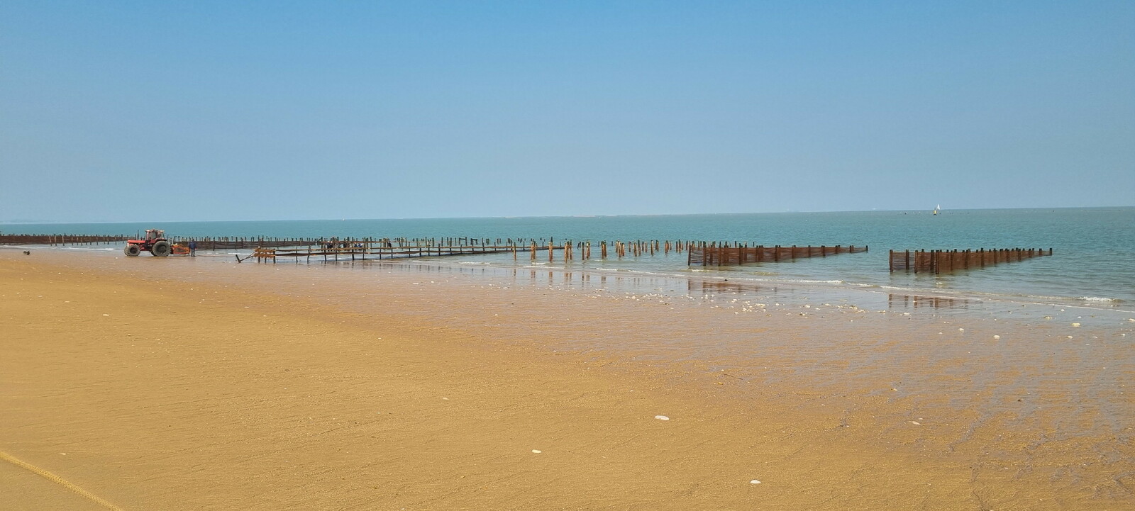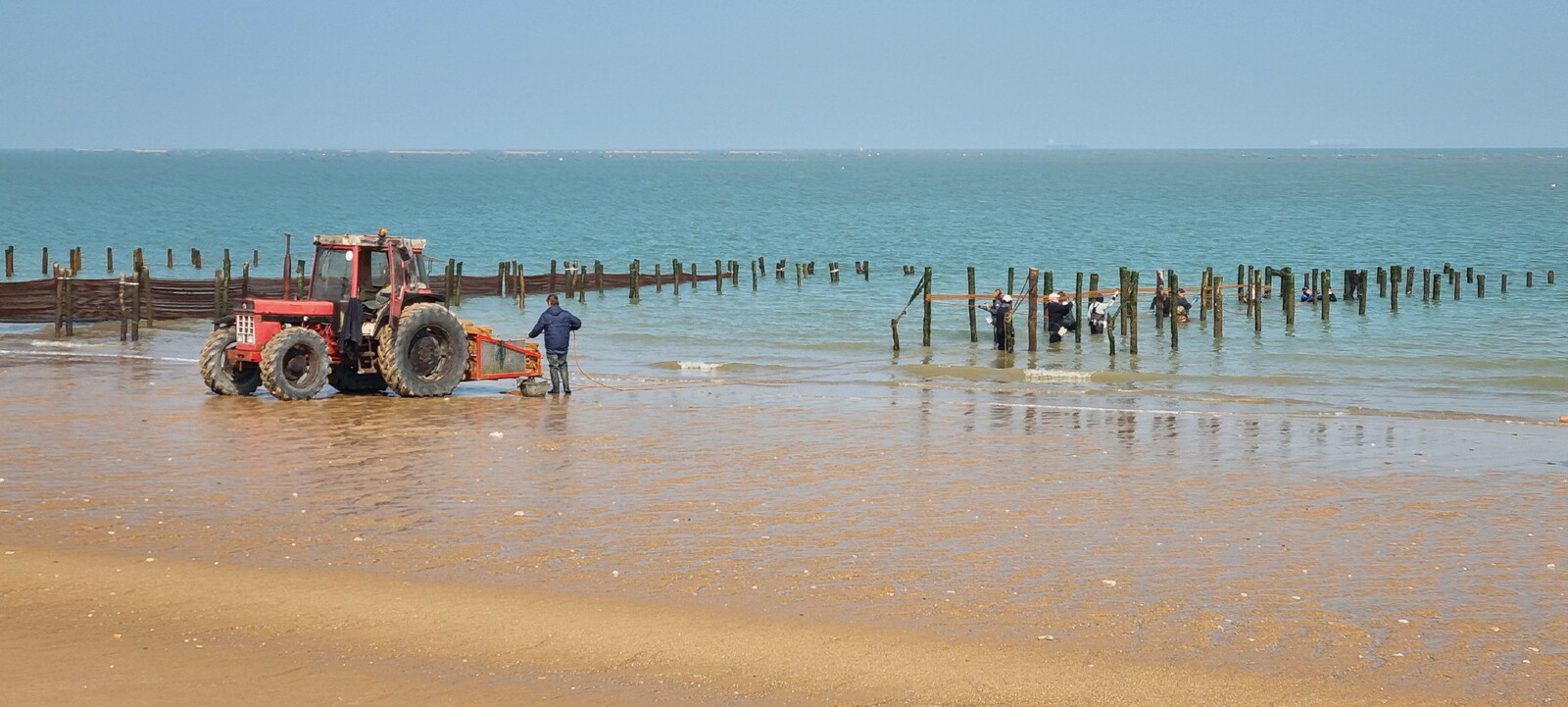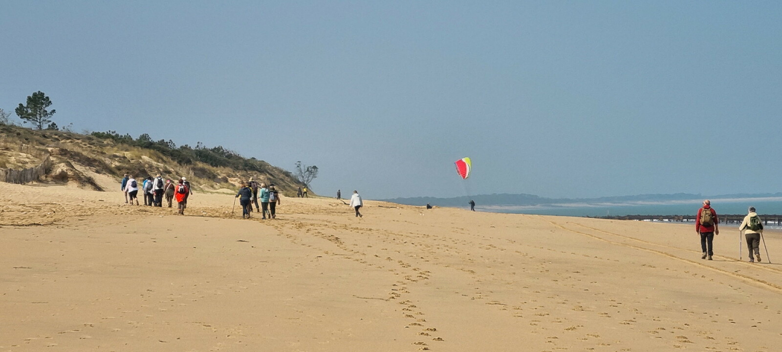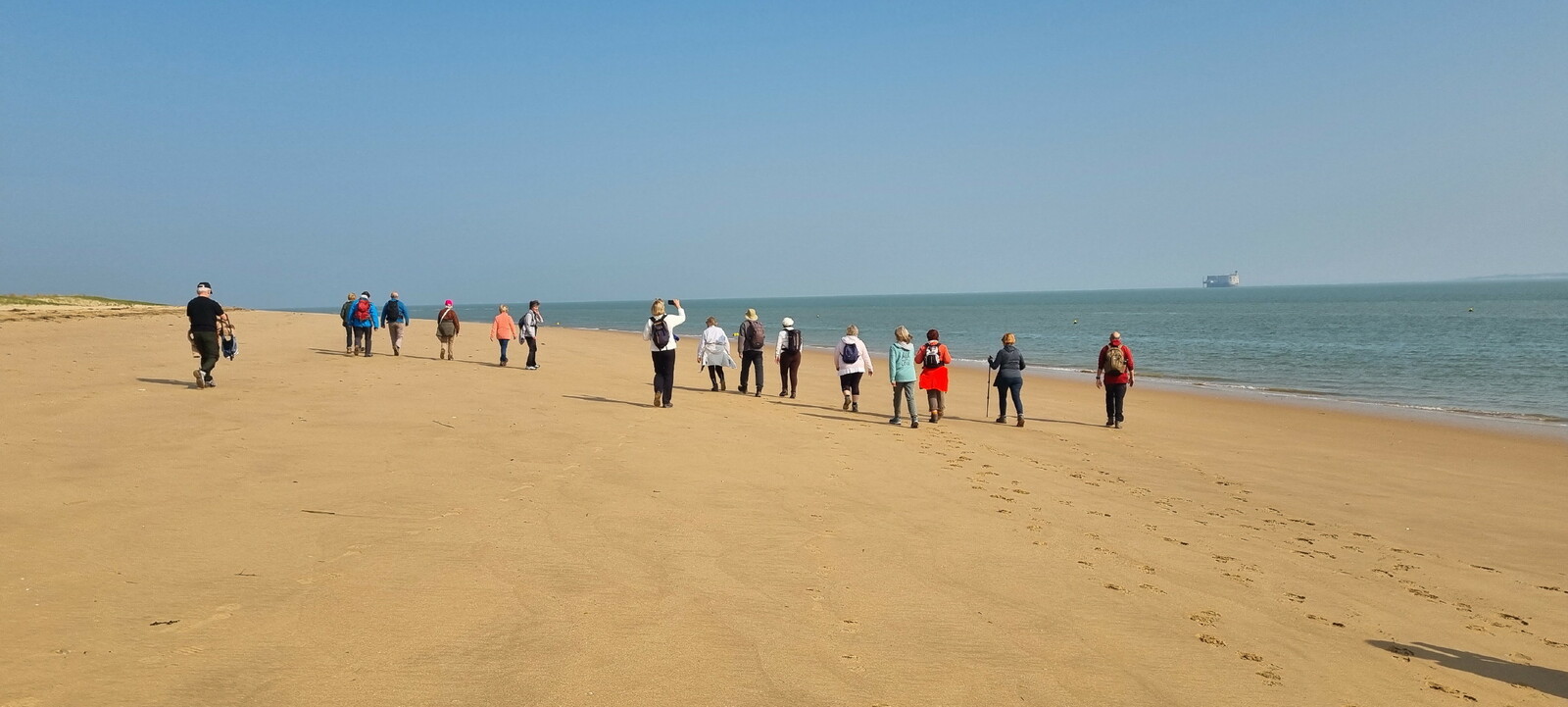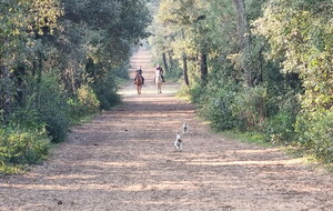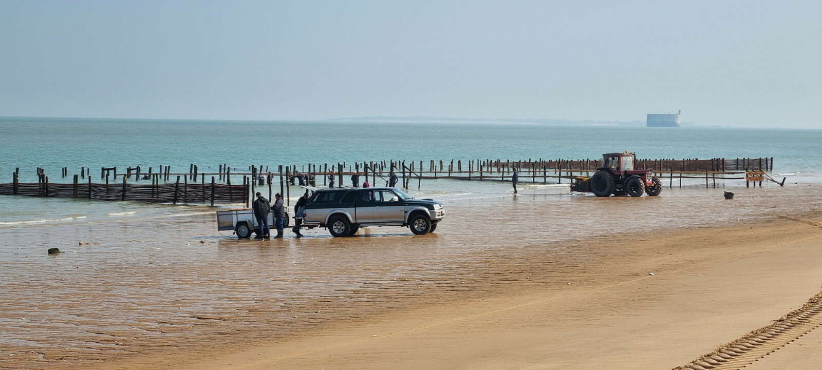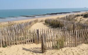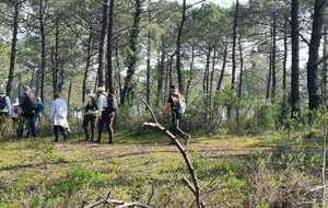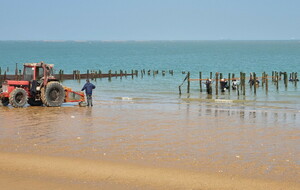 Démarrage par le Sentier des Hibiscus et plus loin nous rencontrerons des Cavaliers du Fort Boyard. Nous finirons par le sentier de la plage de St Georges d'Oléron et croiserons une équipe de longeurs et longeuses de bord de mer en plein effort. Passé la pointe des Saumonards s'alignent les pécheurs aux multilignes et les ostréiculteurs en plein boulot dans leur parc à huîtres.