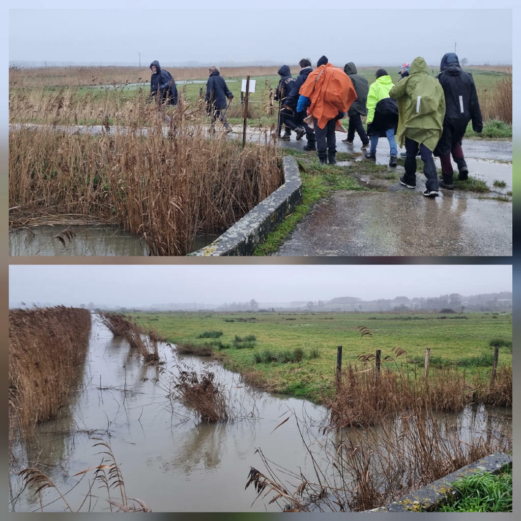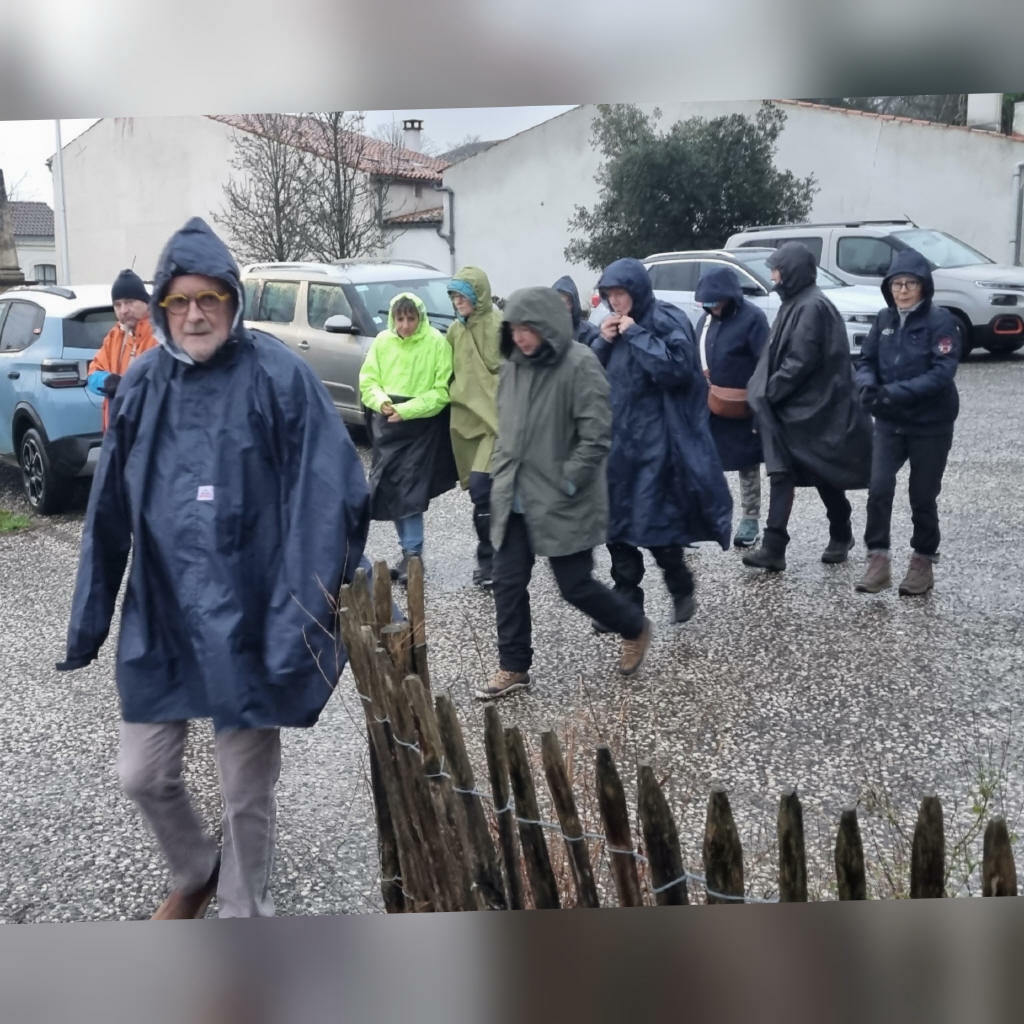 Bah ! De nouveau une rando sous la grisaille et un crachin bien Charentais. Après dégustation des sablés aux amandes sans gluten de Nadine, on y va le sentiment de faire front au temps. On gagne en sourire, en force dans le vent, en très bon randonneurs, pas de jambe de bois.