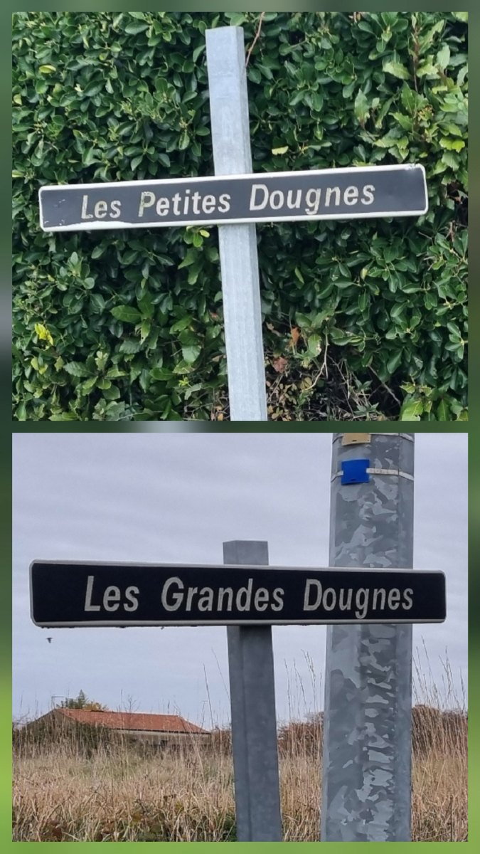 On s'en réjouit, la vue est imprenable sur la Gironde bien grise depuis le fief de Balode. Nous passons le bourg du Petit Chenac pour se diriger vers les Petites et les Hautes Dougnes. Bois et Champs des Dougnes, Plantis des Petits Prés, Chez Carre, Plassac. Puis engageons vers le Mourier, l'Essert, Le Maurier , l'Augerie, les Hérault, Fonbrette.