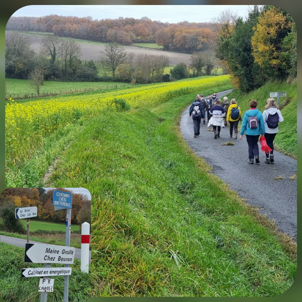 Après avoir traversé tous ces sentiers campagnards ou forestiers comme celui de la Grillerie nous bifurquons par Mon Désir et le plaisir d'avoir les pieds au sec quelques instant. Chez Poiron, la Brousse, la Combe de Braud, de nouveaux de très bons dénivelés à monter ou à descendre. Les Prés de la Rivière remettent un coup d'humidité aux chaussures que nous quittons passé le magasin de Caviar.