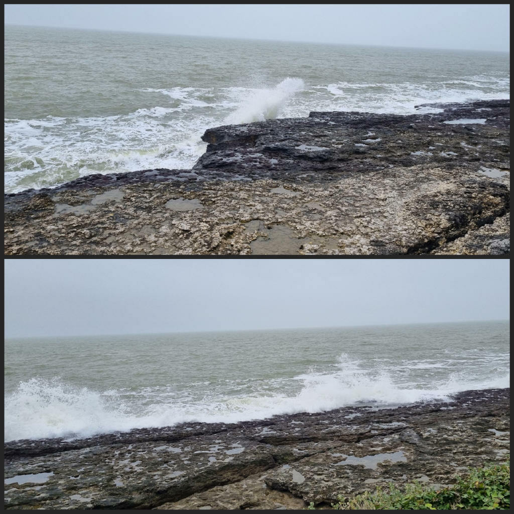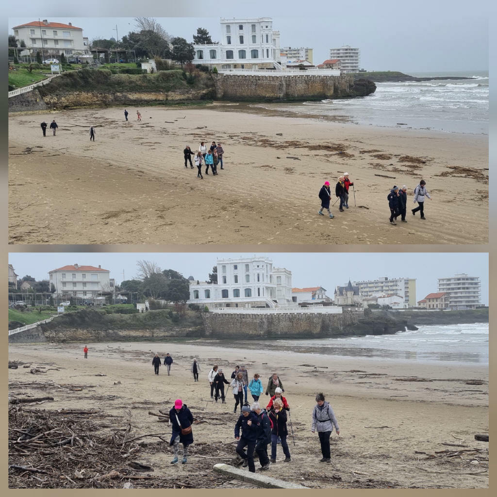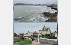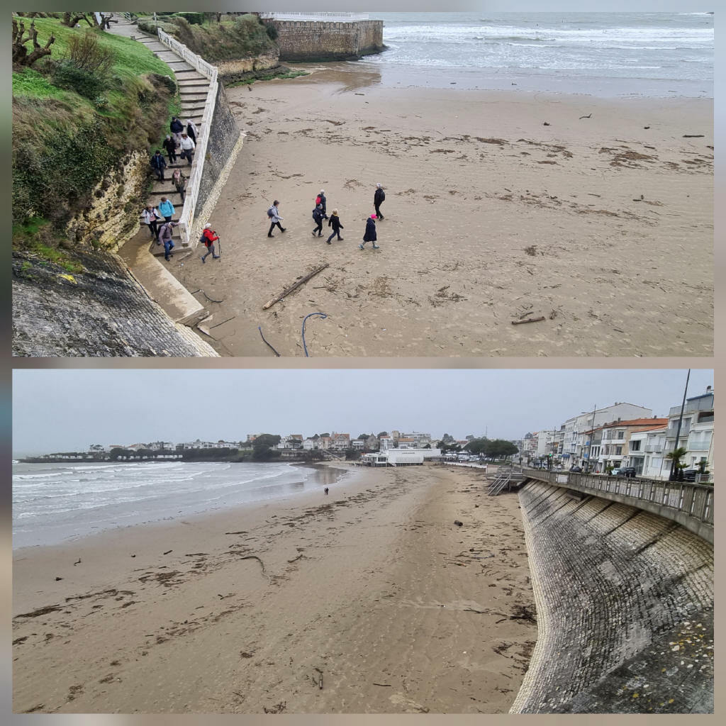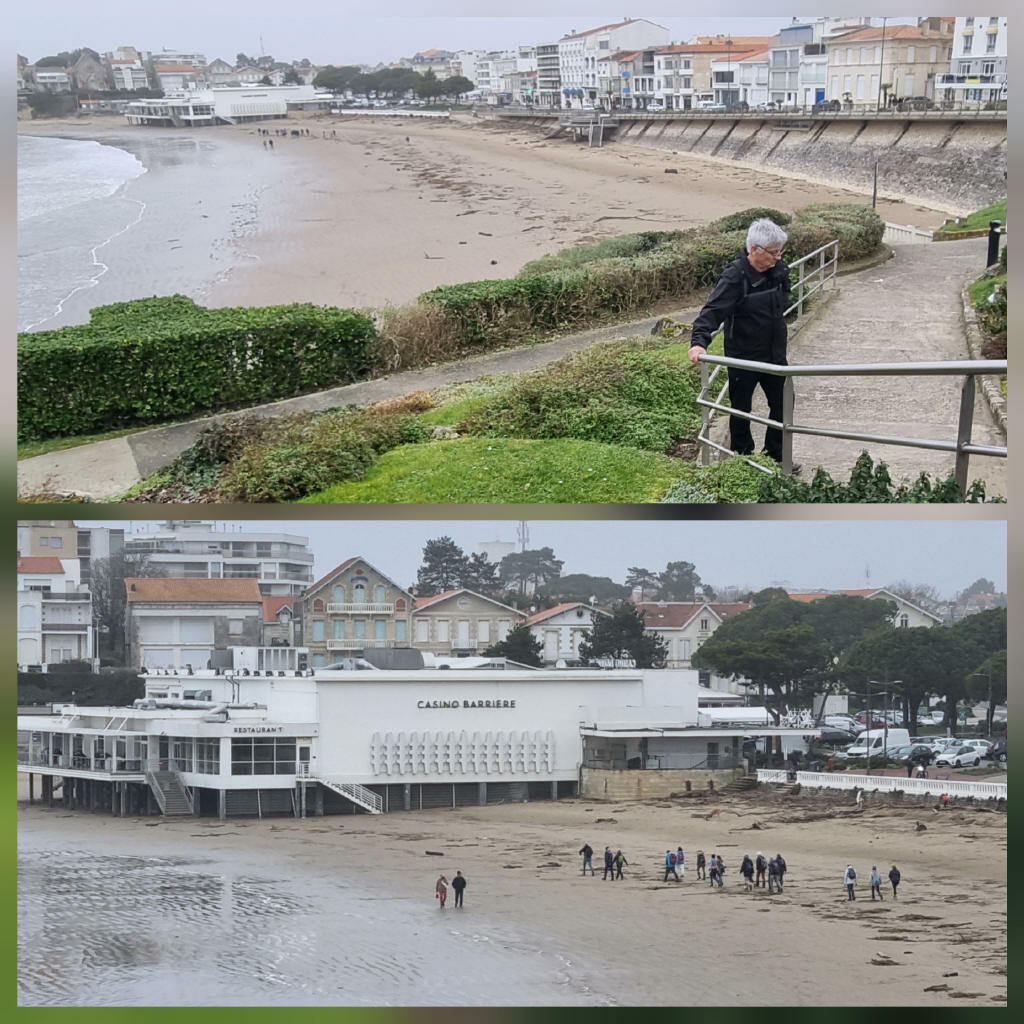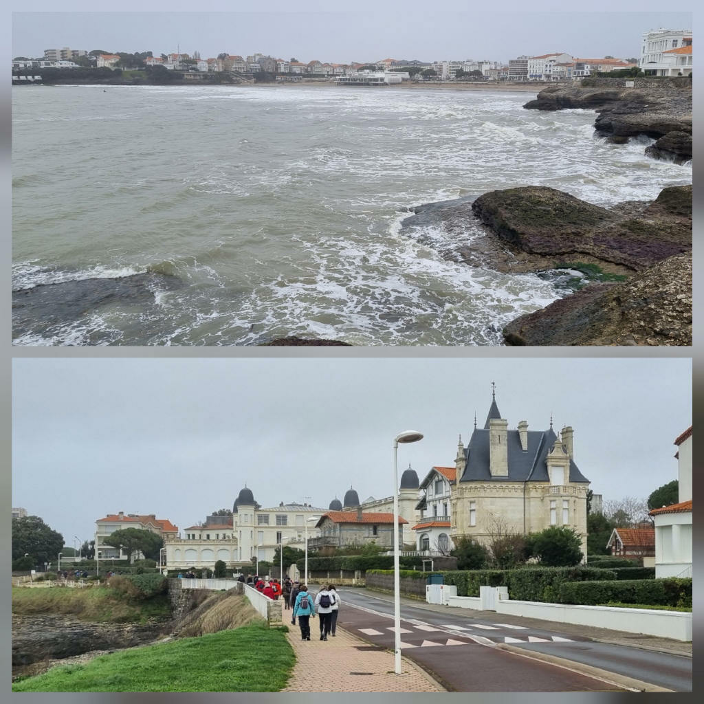 Ah, encore détourner par les travaux de la corniche de la Thalasso. On fonce donc autrement vers la plage du Chaix et rejoignons celle du Pigeonnier. Sur le boulevard de la Côte d'Argent qui longe la mer déchainée, le groupe des sportifs a difficulté de nous doubler (et avec le vent dans le dos svp, 😂😂😂). Le boulevard nous mène aux baignoires de Pontaillac, sa grande plage et son Casino.
