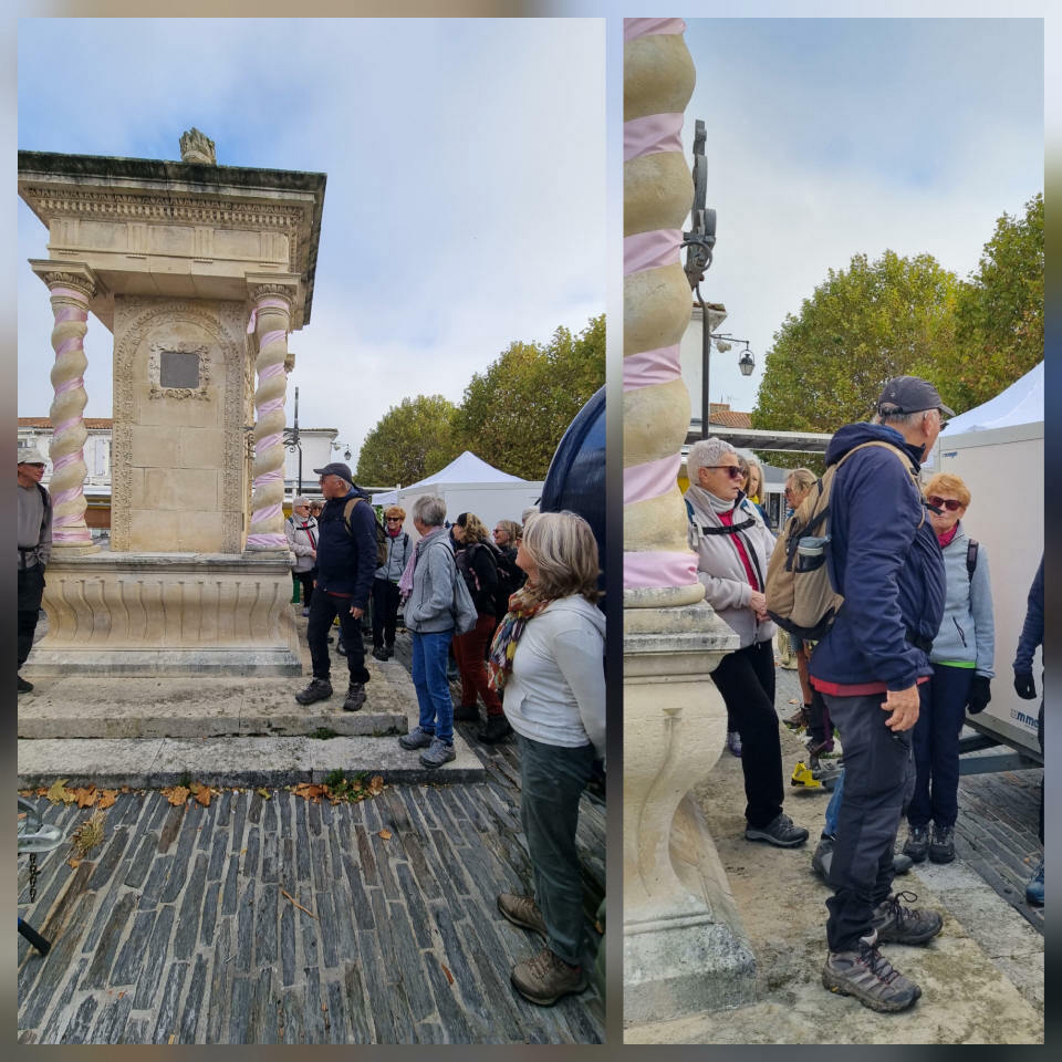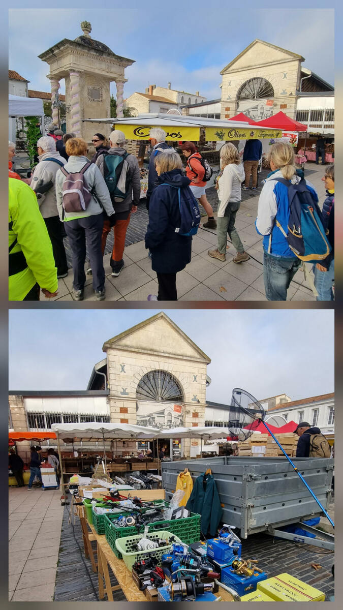 Nous partons pour un parcours de 13,5km sans trop de retard pour notre arrivée. Purée ! Ce matin le froid s'est installé. Les 10° nous obligent comme même à partir couvert, fini l’été ! La marée est haute, le plafond devient bas et en retour, l'inverse s’installe. Nous démarrons par la citadelle Vauban et le circuit des remparts avec vue sur Fort Louvois et le Pont d'Oléron. Après avoir passé l'Arbre de Richelieu, l'Arsenal et la porte Royale, arrêt culturel à la porte des Pêcheurs, passage devant la Caserne Boileve et nouvel arrêt culturel à la Fontaine de la place de la République en plein marché.