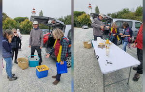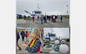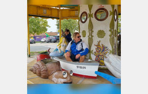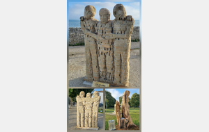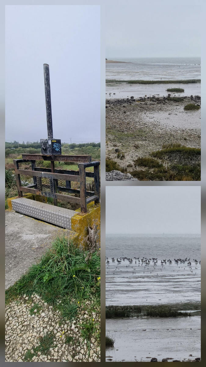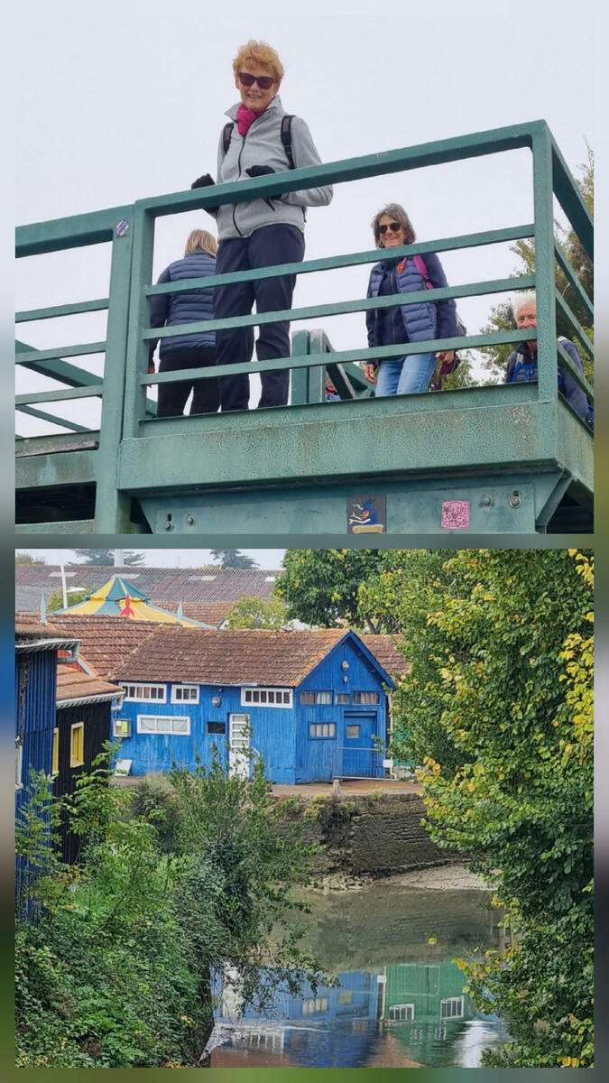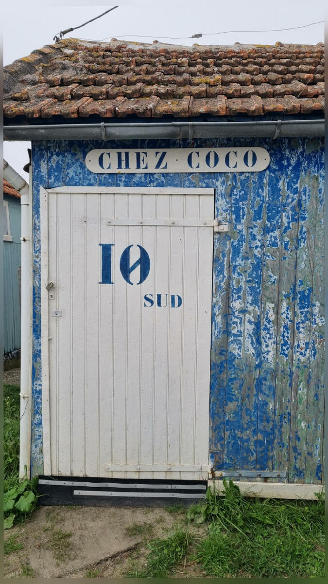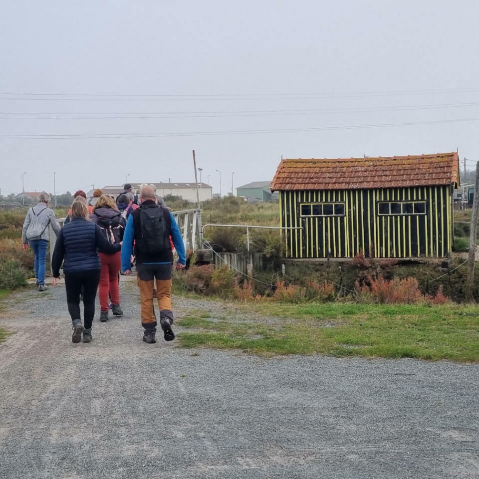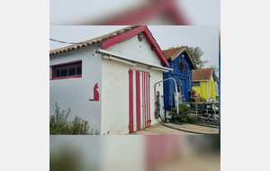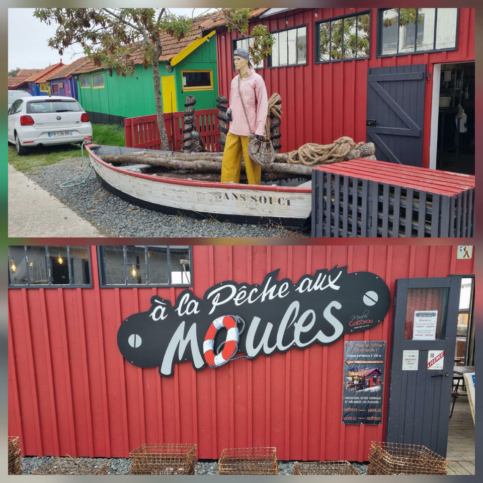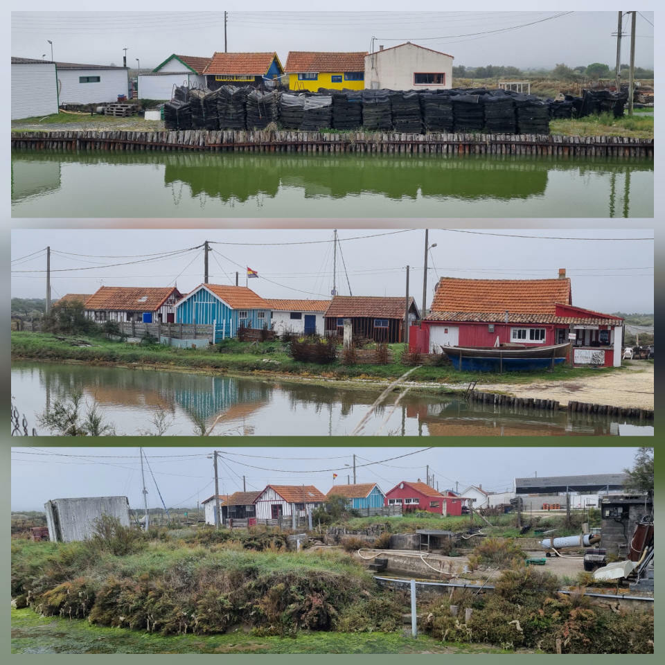 Nous entrons chez « Mr Souc » où le matériel ostréicole est transformé en du grand art surprenant du moment qu'il est recyclé, faut le faire ! Nous poursuivons par le chemin Tricard et Baudrier. Au port, nous dégustons les bananes confites d'Anne et le restant des sablés. Poursuite de la marche par la traversée de la D26 avec bonne prudence. C'est elle qui fait l'entrée/sortie de l'île. Nous prenons le chemin de la Mémoire qui longe la mer des Pertuis et le marais d'Oulme. Nous passons sa pointe et celle Blanche pour entrer dans le chemin des Oiseaux qui nous mène dans toute la partie ostréicole touristique et très colorées.