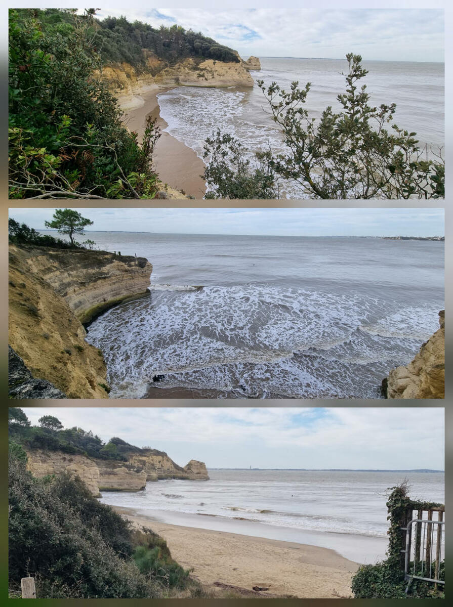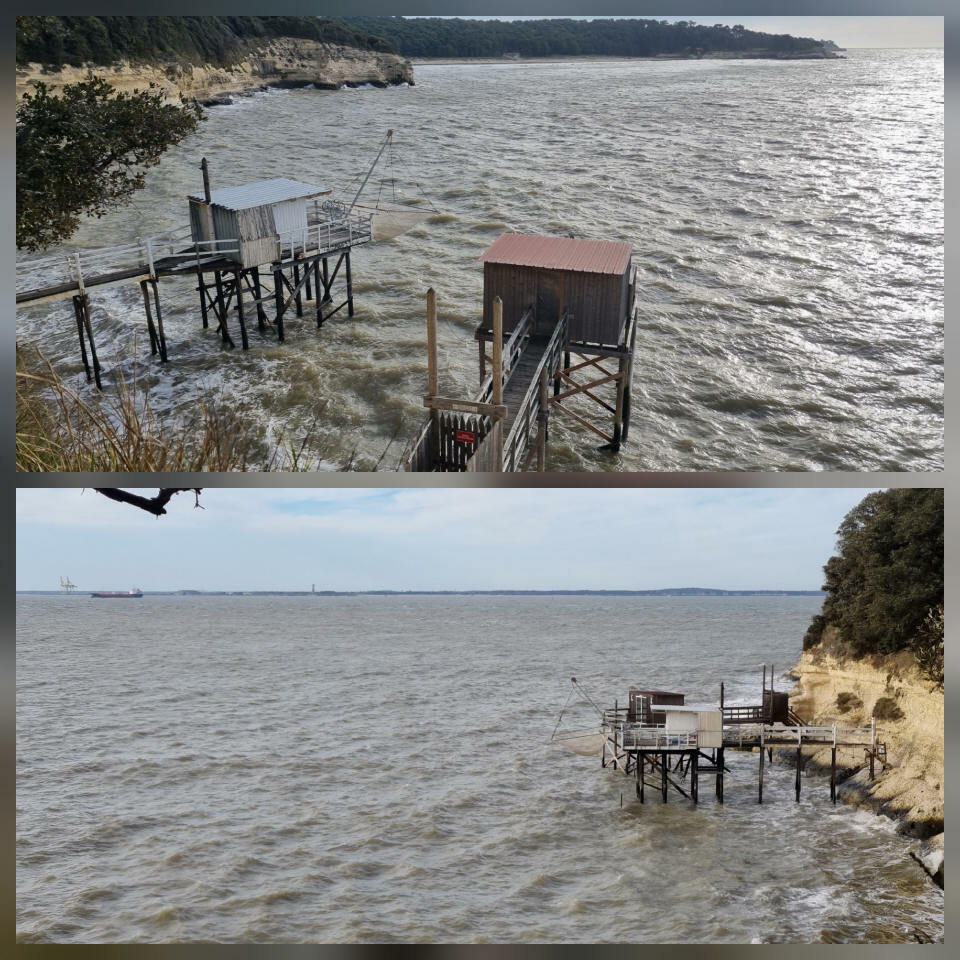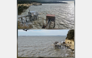 C'est marée basse sur la Grande Conche de St Georges de Didonne et on s'échauffe tout de suite dans le sable au bord de bonnes vagues. Au bout de la grande conche de SGDD, nous empruntons le chemin étroit du Fort de Susac pour rejoindre la plage de Susac. On peut apercevoir des carrelets parfois enlevés par les dernières tempêtes. Depuis le haut des falaises, le cadre panoramique est très agréable le long de la Gironde.