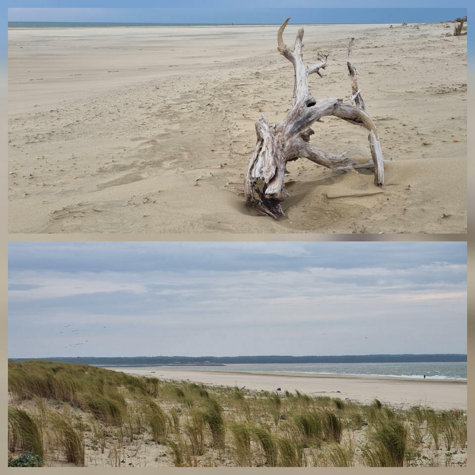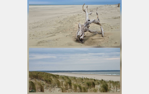 En effet, nous partons du parking au Phare de la Coubre dans un seul et unique chemin de la Bonne Anse qui est classé Natura 2000. Pas question de couper, de mettre ses pieds n'importe où et sur la végétation, même l'opération 'arrêt technique' est réglée à la lettre. Nous allons tout droit sur du sable jusqu'à aboutir à la limite entre la dune et le marais inondable de l'anse. Nous aurions même pu changer les paroles de la chanson de Nat King Cole 'Quizás, quizás, quizás' en 'du sable, du sable, du sable' tellement il y en a.