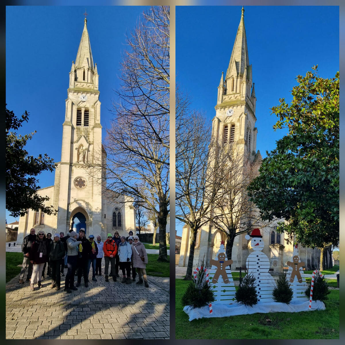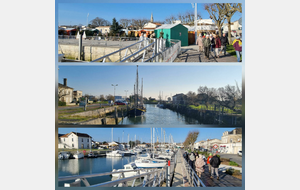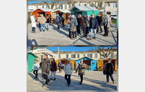 Bien sûr, petits cakes de Françoise et bonbons gingembres de Jocelyne accompagnent notre 1er arrêt. Nous poursuivons et sortons par le chemin de la Garde puis les rues de la Tremblade. Nous ferons un seul demi-tour car le pont piéton de l’écluse du port est ouvert et nous n'avons aucune intention de traverser à la nage. Par contre, traversons sans soucis le marché avec les petites cabanes de Noël, aux bonnes senteurs de vin chaud et friandises.