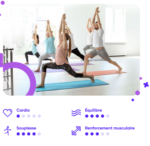 L’animatrice vous amène à réaliser les postures et leur enchainement à votre rythme et vous permettre un travail en autonomie.