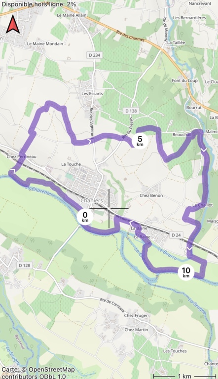 Le lieu de rendez-vous est sur la route qui mène au bac à chaîne au 65 Rue d'Aliénor d'Aquitaine à Chaniers - Grande Place de Chaniers.
