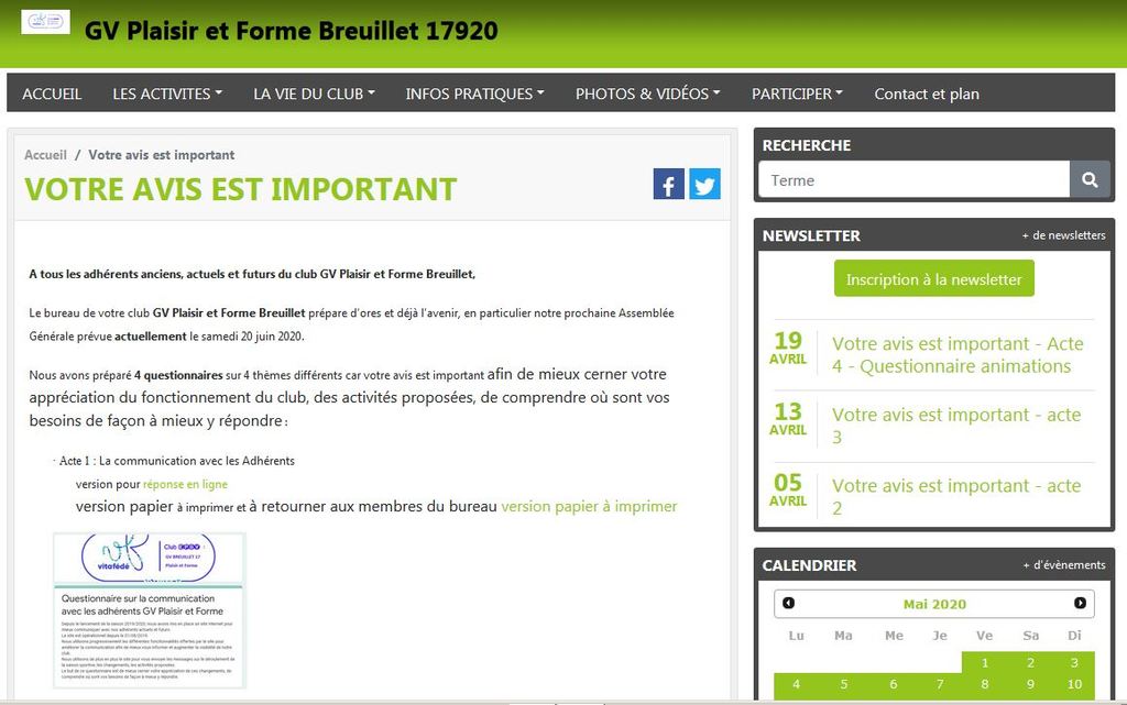 Dans le contexte actuel post-confinement et la préparation de la saison 2020/2021 qui s'annonce complexe à organiser, il est très utile pour le bureau d'avoir une idée de vos attentes et de vos préférences.