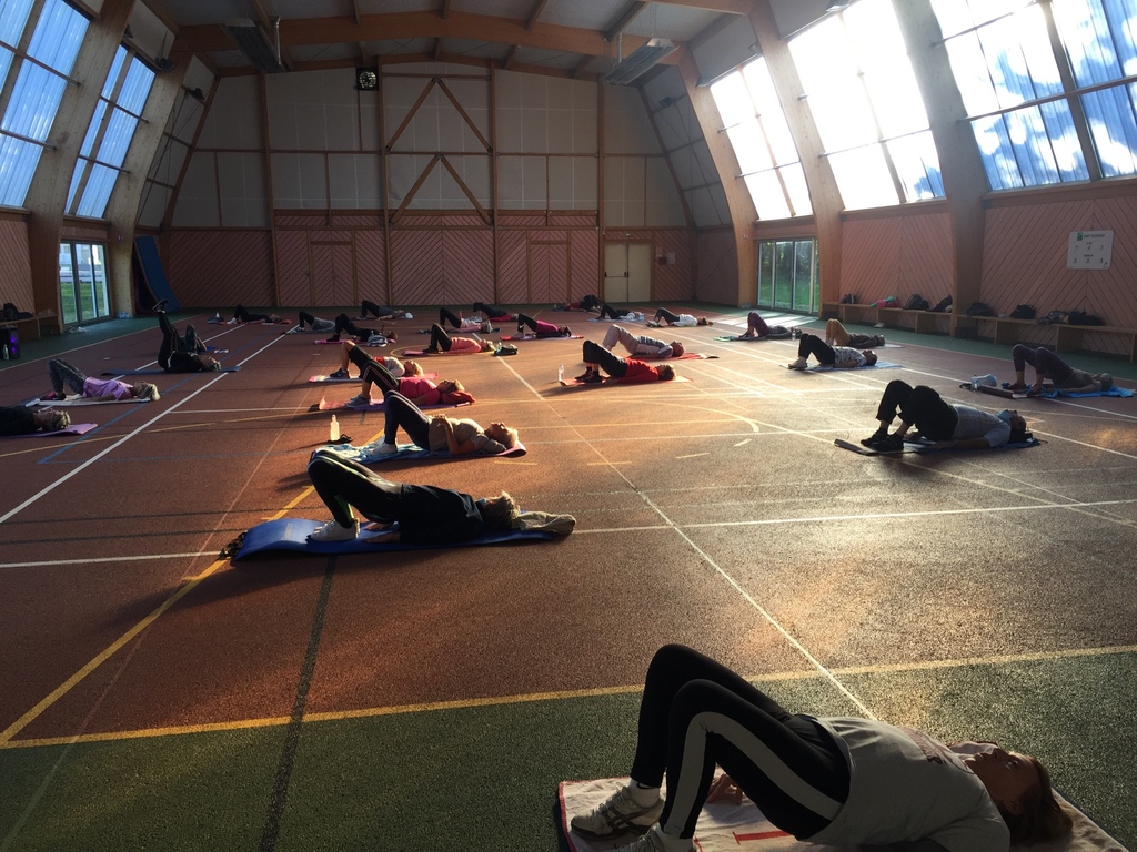 Travail au sol lors de la séance de gymnastique dynamique du vendredi matin.