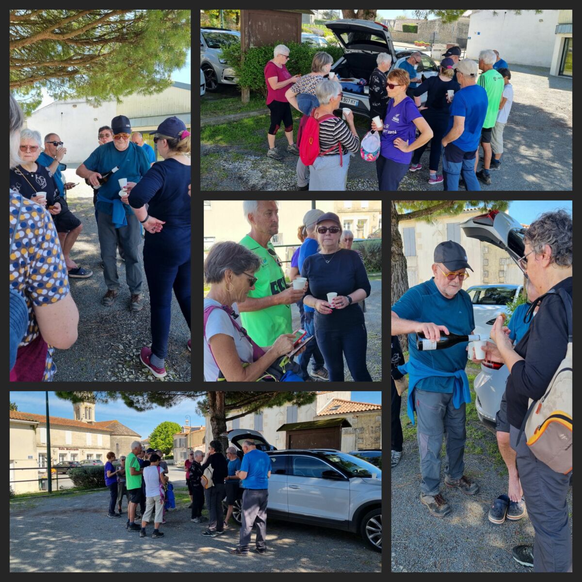 Et quelle magie les anniversaires ! Marianne et Gérard nous régalent avec "deux doigts coupe faim" d'un excellent pain d'épice miel/anis maison arrosé d'un petit blanc du coin. Une randonnée aussi copieuse en gourmandises qu'en paysages dans cette belle contrée du vignoble de Chenac-Saint-Seurin-d'Uzet, région du Pineau. Merci à vous tous et Pascal, nos mollets sont bien rodés!