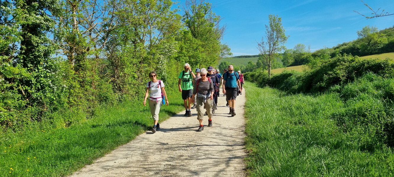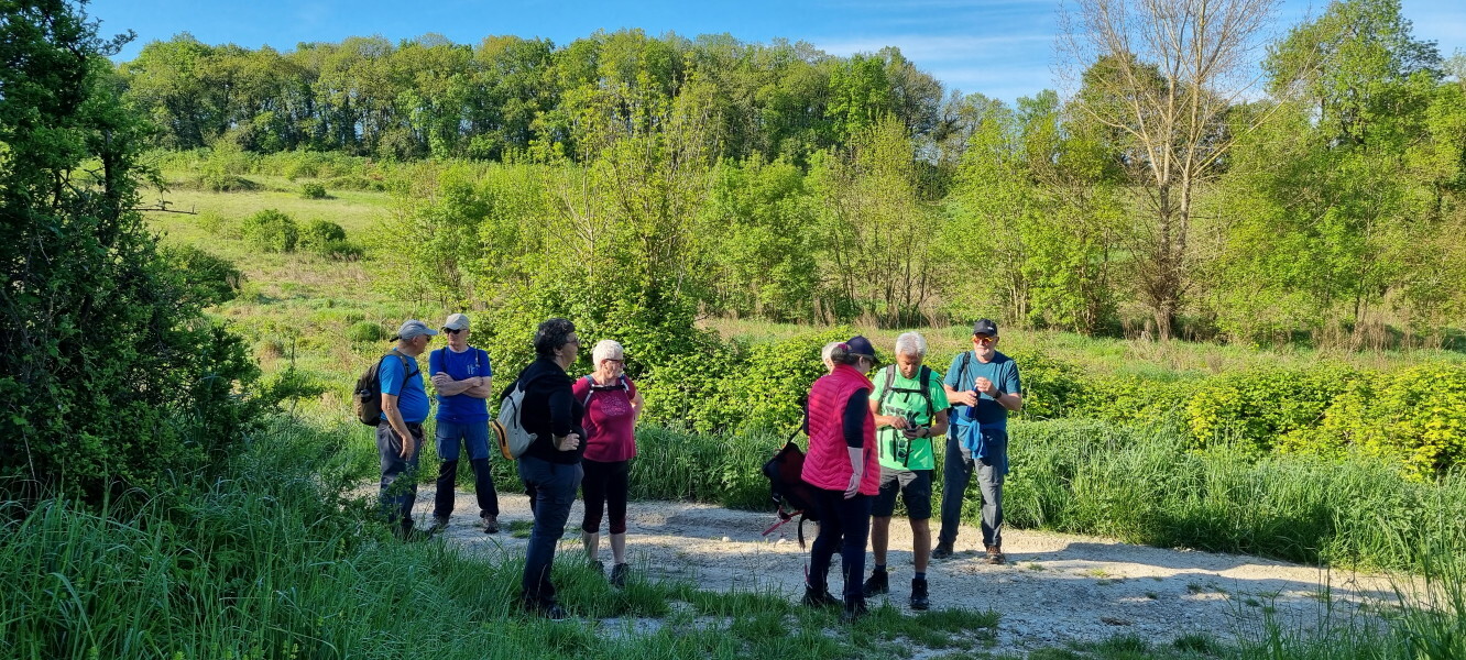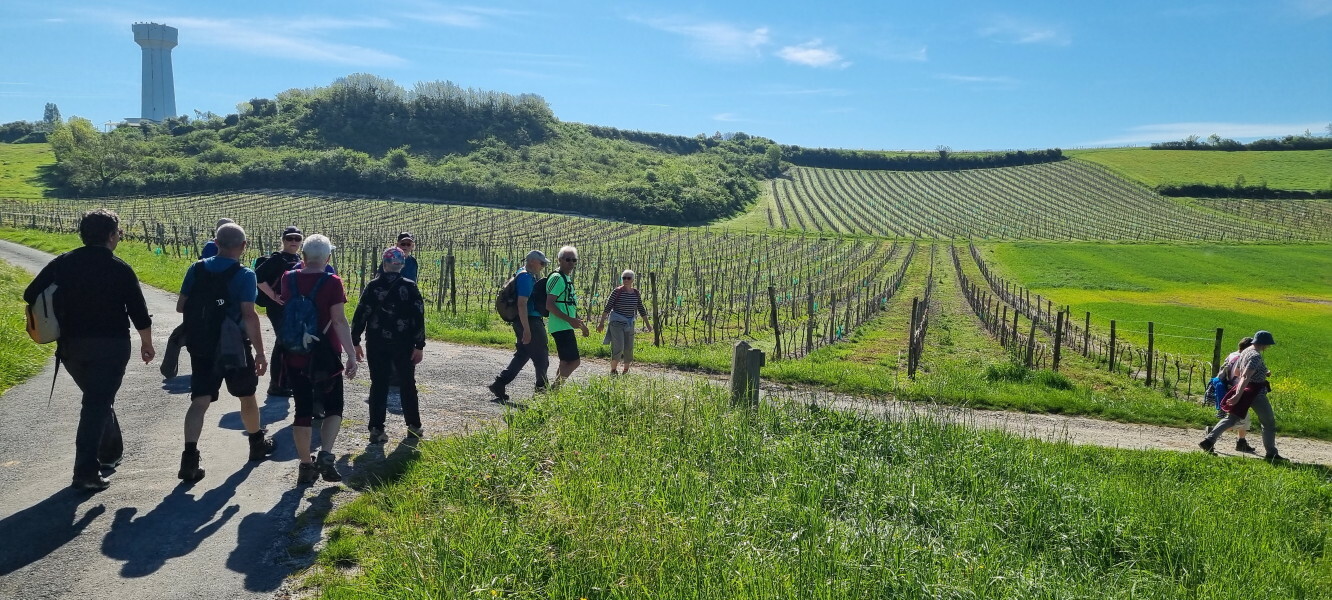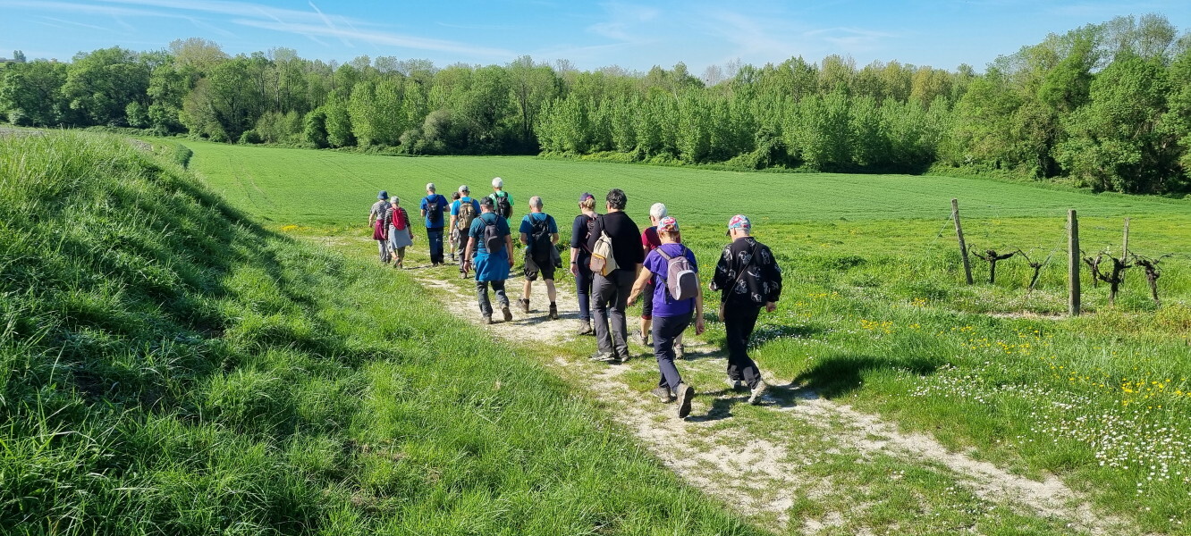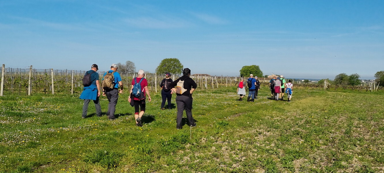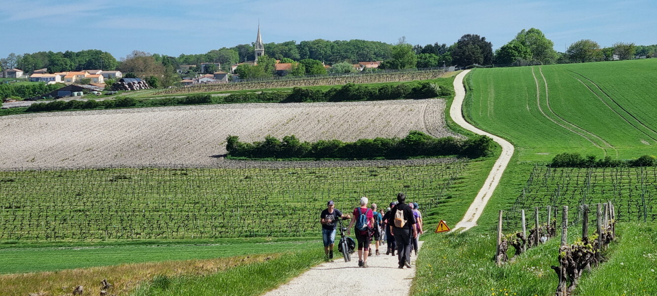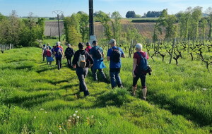 Au chemin des Robineries, nous gâtent de chouquettes et madeleines maison au sarrasin. La rando se poursuit dans les vaux de La Bordé, puis on emprunte le GR360 par la source du Bouil pour reprendre le chemin du Château d'Eau, celui des Ruisselles dont les hauteurs dominent la Gironde, le clocher de Barzan et pour nous, la pose. Les derniers dénivelés brut du Petit Chenac ne peuvent que nous mettre en appétit.