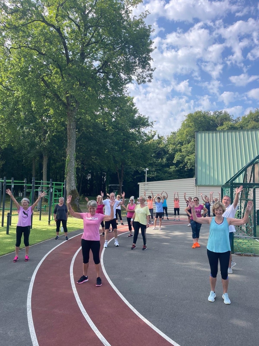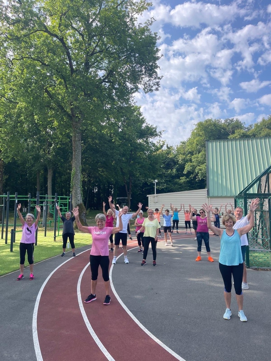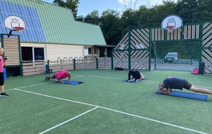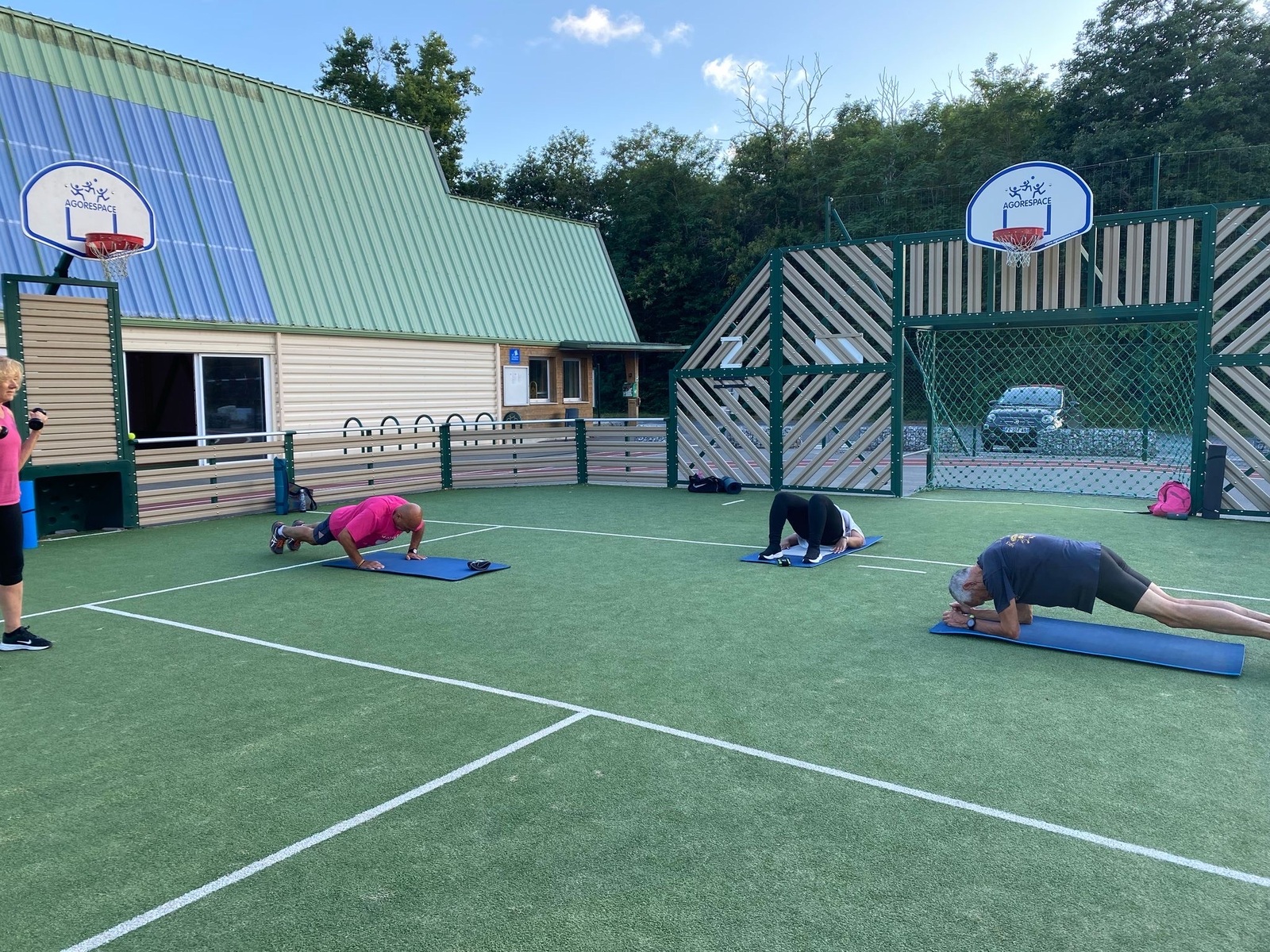 Quand il fait chaud, gym à l'extérieur proposée par nos animatrices Rachel et Virginie