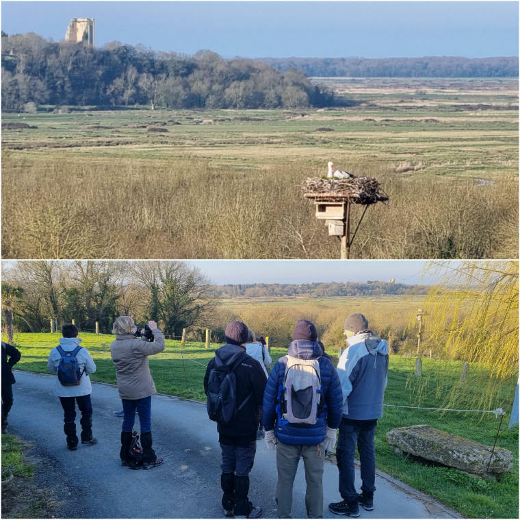 Grand tour ensoleillé dans la contrée de La Gripperie-Saint-Symphorien. Direction la Grange aux Bœufs, un arrêt pour admirer une belle cigogne dans son nid, la tour de Broue et au loin la région de Marennes.