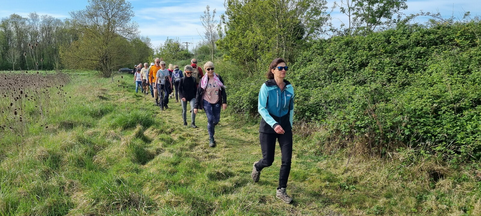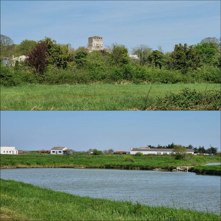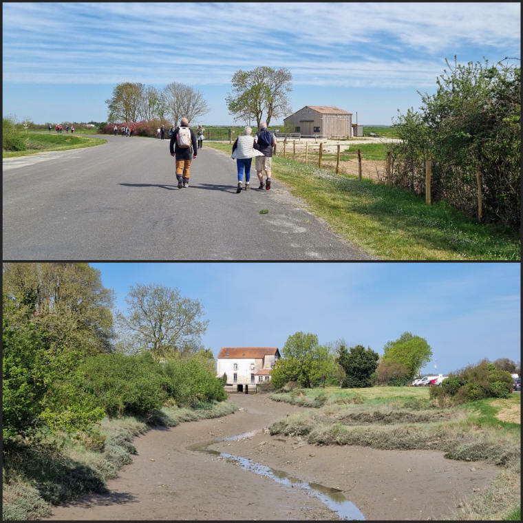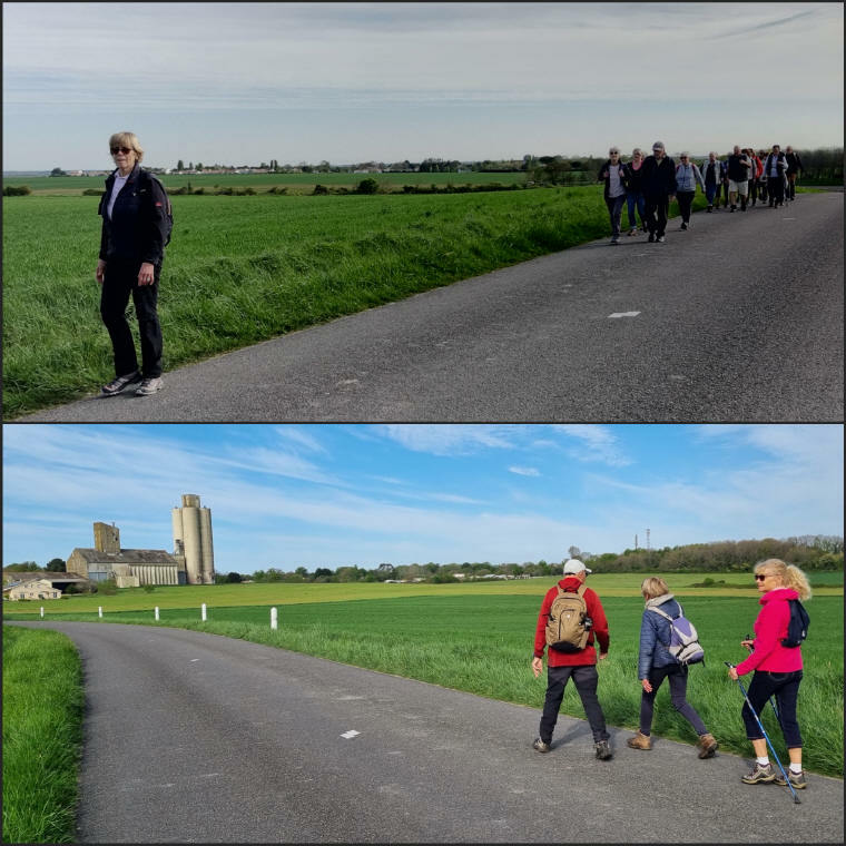 Au chemin de l'Etang (frontière de Breuillet) nous fonçons dans la campagne vers le Monte Rude ou se dresse au loin la Coopérative Charentes Alliance et où nous croisons le groupe des sportifs.