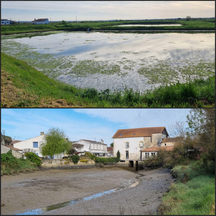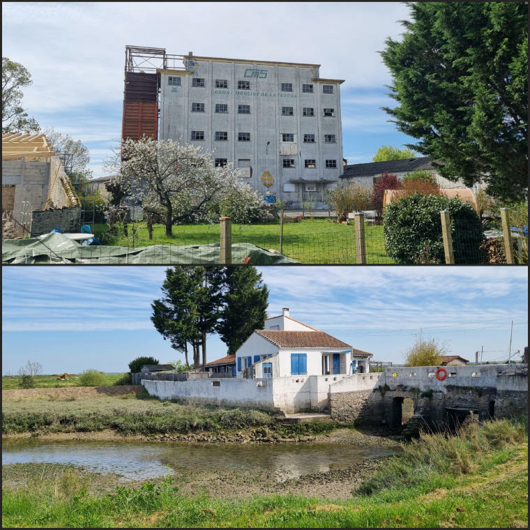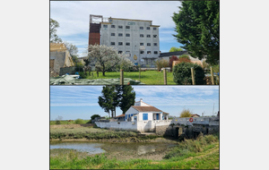 Au lieu-dit AGNOUX, direction le Plordonnier et, par la maison du chef de Gare, on traverse de nouveau la voie de chemin de fer du train des Mouettes. Au chemin du Moulin Neuf, quelle désolation de voir ce bâtiment du "Grands Moulins de la Seudre" abandonné ! Par le Chenal de Plordonnier, nous revenons à notre point de départ en jetant un bon œil sur le bâtiment de Rossignol (maître Saunier et cultivateur de crevettes impériales - https://www.seldemornac.fr/ou-acheter). Il est situé sur la Prise du Foiron le long du chenal de Mornac ou se dresse aussi le Moulin à blé à marée, puis minoterie, puis menuiserie et la belle église Saint-Pierre de Mornac-sur-Seudre.