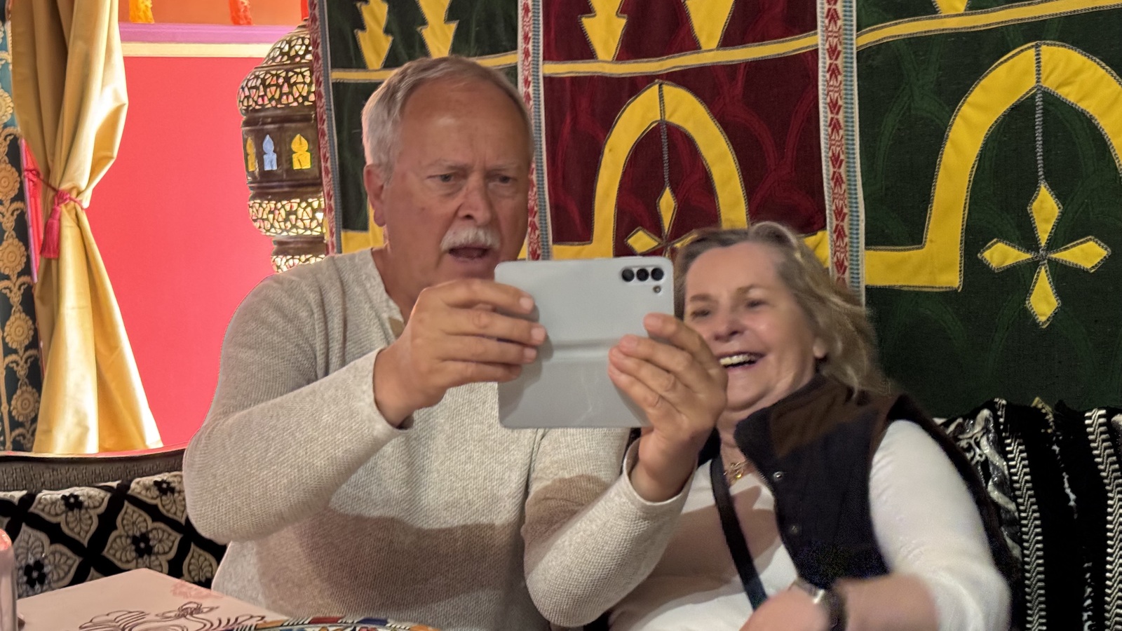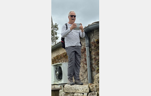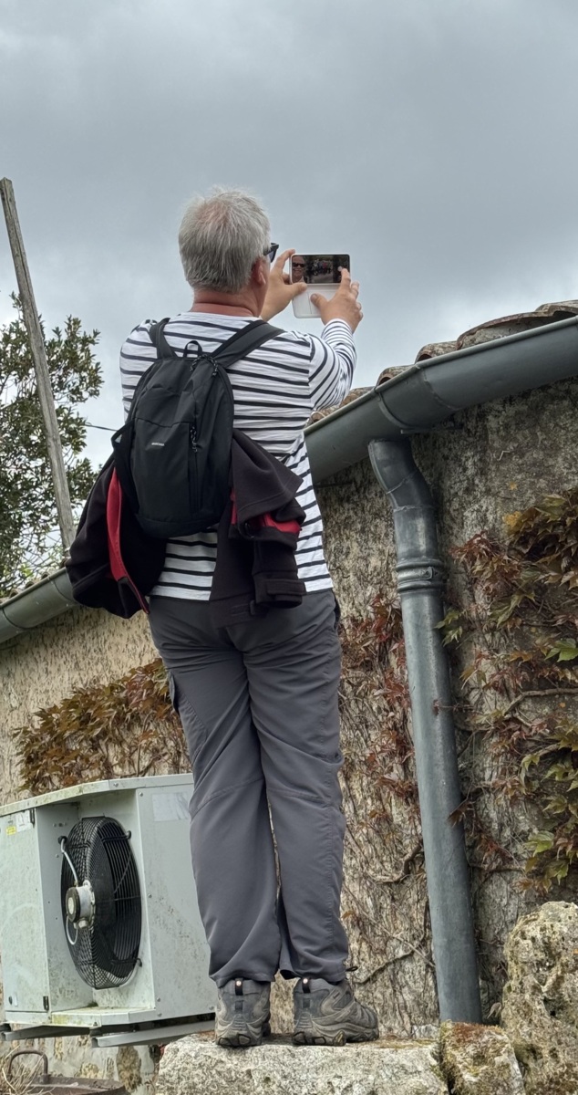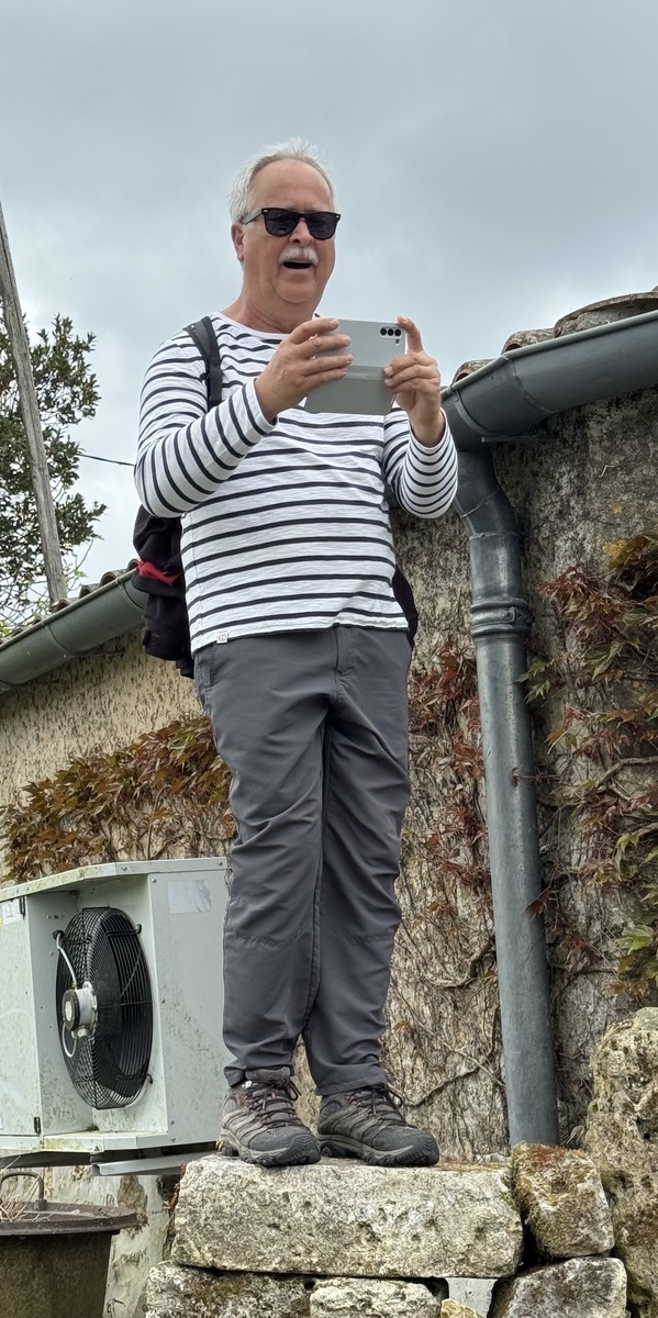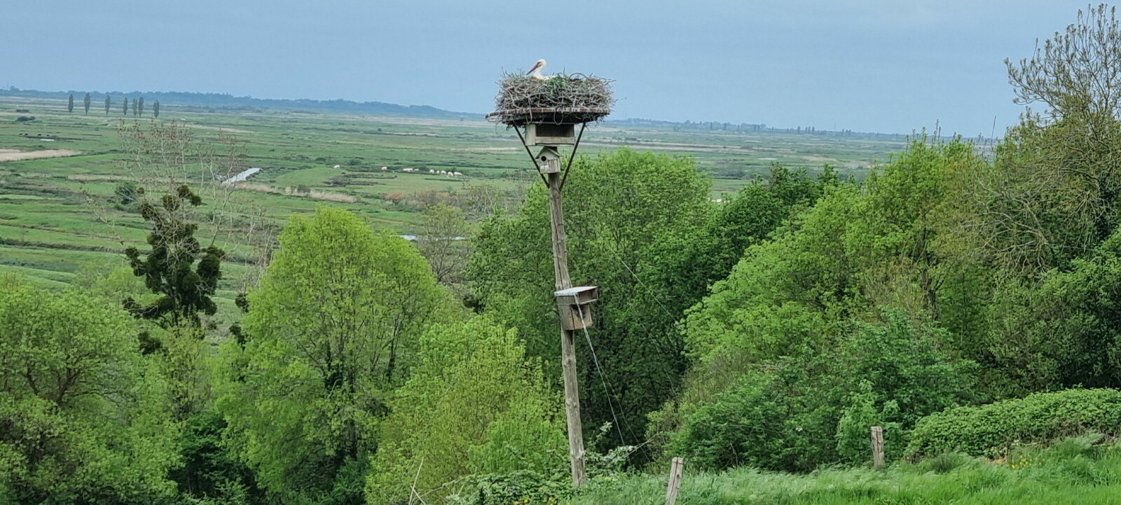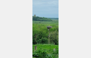 Même si ça puire, un grand silence est très sollicité car en effet, devant la boutique de la ferme, Dame Cigogne règne dans son nid et pour des photos, ne faut pas déranger. C'est ici aussi que nous ferons un selfie devant le décors grisonnant donnant sur la Tour de Broue et l’horizon de Marennes.