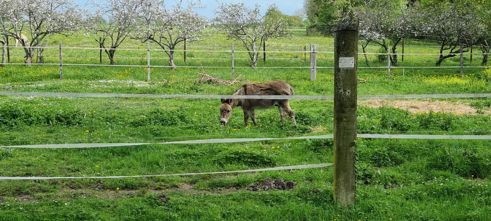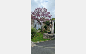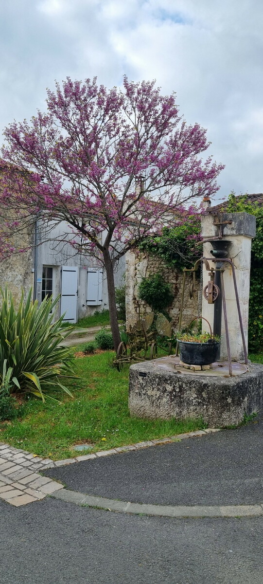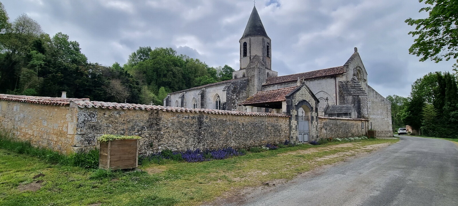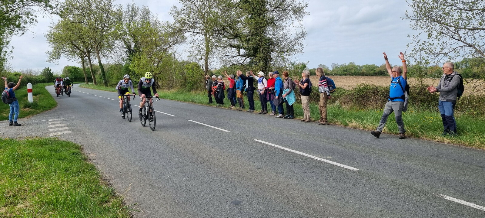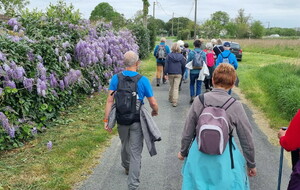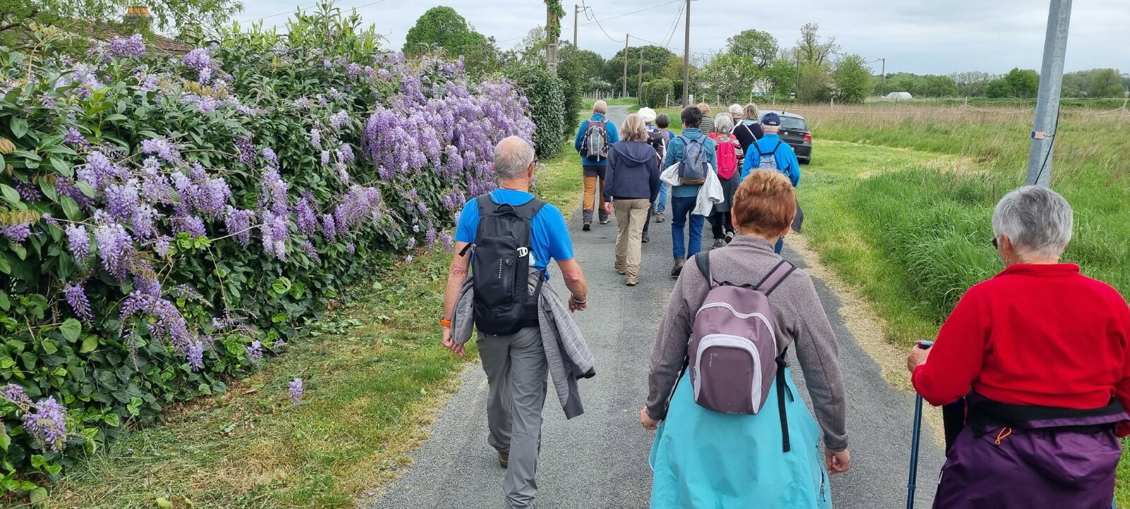 Nous continuons par Le Peu et l'Ornut pour emprunter une bonne descente vers la rue de St Symphorien La Chataigneraie où est implanté le petit cimetière et l'Eglise Saint Symphorien de la Gripperie (XIIe siècle). Après la Fontaine Miraculeuse, une bonne côte pour le cardio. Passer l'essoufflement, nous poursuivons vers le Bois des Grand Prés et contournons la Griperie. Pas gripper pour autant, nous attaquons un autre dénivelé qui nous amène rue de Beaulieu ou de belles glycines pendent aux gouttières. Une bonne pause à La Bernelière et en poursuivant la route des Sables, celle de Marennes et le chemin du Bouquet, nous croisons sur la D733 une bonne équipe de cycliste qui exclame le bonjour.