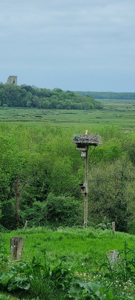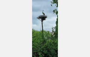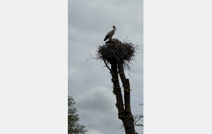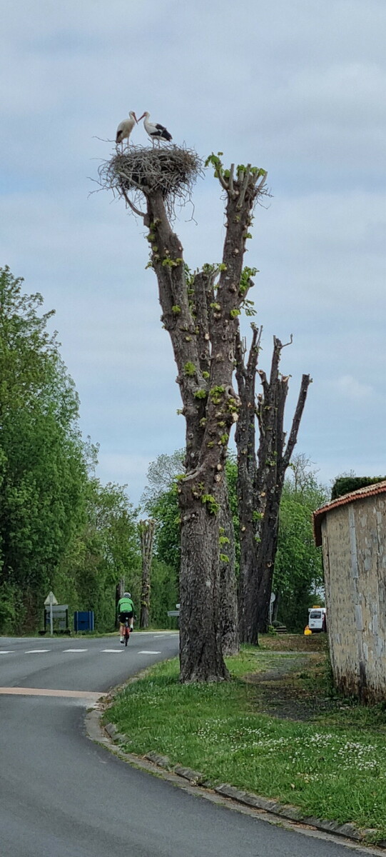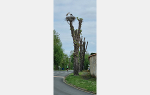 Les chemins du Fief du Grand Bois nous font atteindre notre point de départ et vous verrez sur les photos un beau couple de cigogne qui a implanté son domaine sur la cime d'un marronnier.
