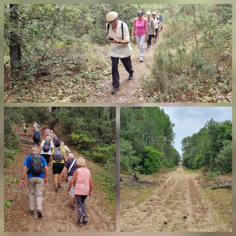 Par les sentiers on s'enfonce dans la forêt de la Coubre pour atteindre la Borne à Gravaude (citerne anti incendie). Pause passée, nous traversons avec prudence la D141 très fréquentée en ce moment et entrons dans la forêt des Combots d'Ansoine.