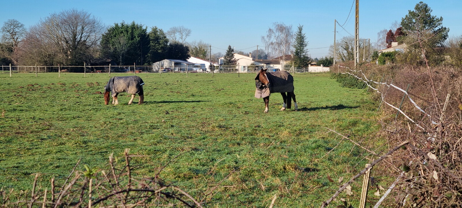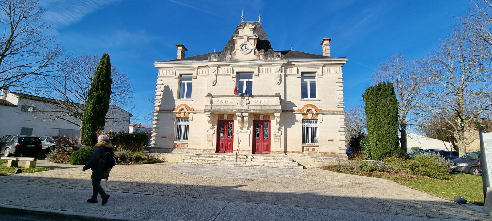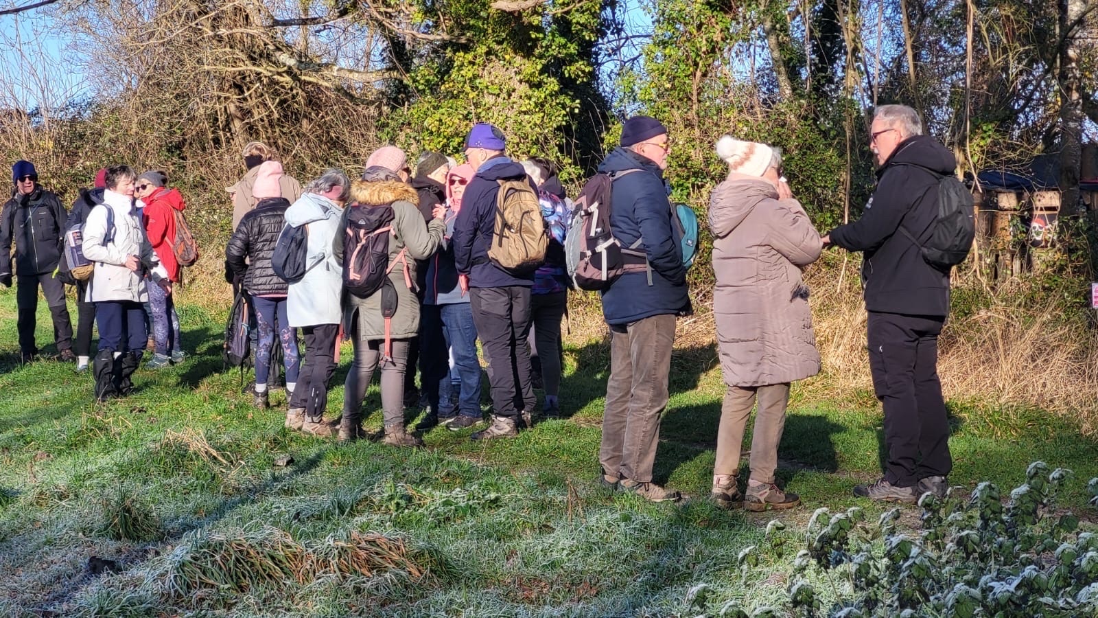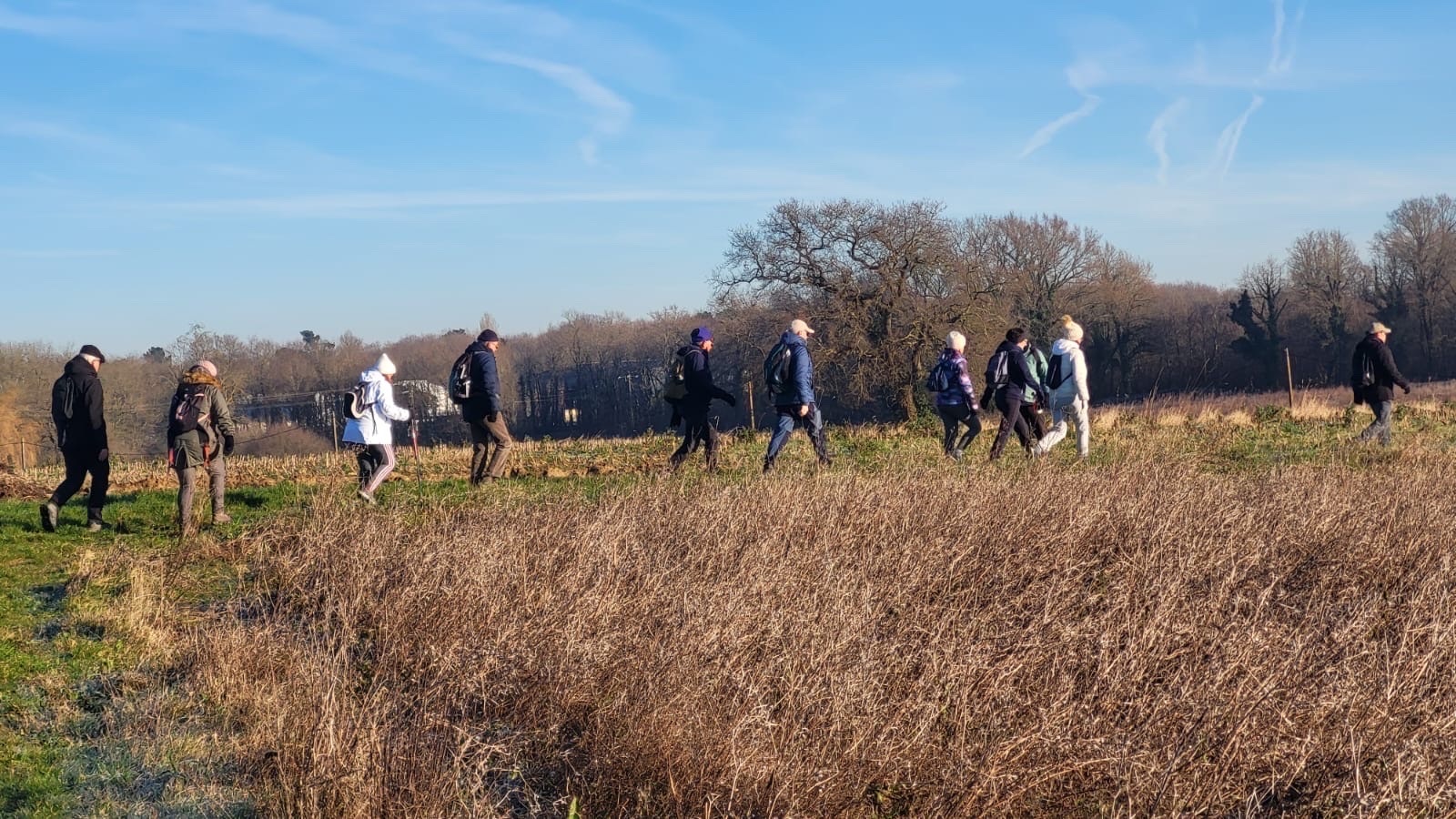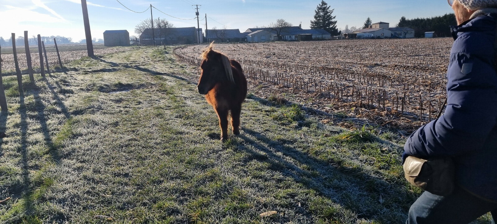 Les bonnets n'ont quitté personne; temps sec, froid de canard, 2° et des chemins gelés dans la belle campagne de Rétaud. Enfin pas d'eau, du ciel bleu et un magnifique soleil. Depuis la place de l'église St Trojan, à l'étroit parking, la trace nous mène par les Moulins des Bodins, la ferme bovine au St Christophe, le passage de Hillairets, le chemin des Fontaines, le Muguet, la Guerinaille, Beaulieu.
