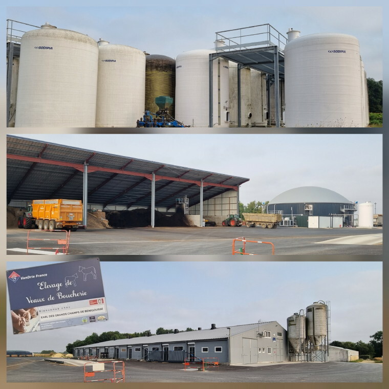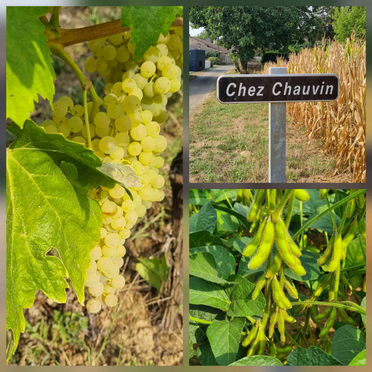 Depuis la place de la Mairie, nous passons par la rue du Calvaire, le chemin des Marronniers, le Bois Noir pour atteindre Bennigousse. Ici, une immense exploitation d'élevage de veaux de boucherie Bodin et de cuves de stockage en polyester pour le vignoble la Cognacaise.