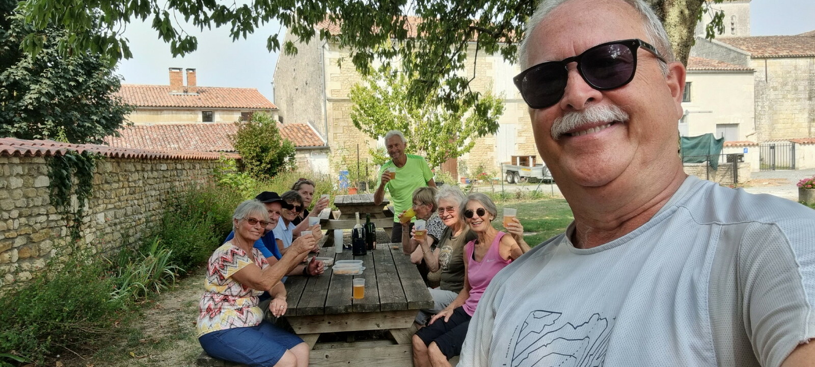 Après avoir rebroussé 2 chemins dans le bois de la Fiolle, une ultime pose boisson au Moulin de Rioux. En abordant la rue St André, nous passons devant le Domaine de Beaupréau, la belle église Notre Dame de Rioux et les Halles de Rioux qui remontent probablement au XVe siècle.
