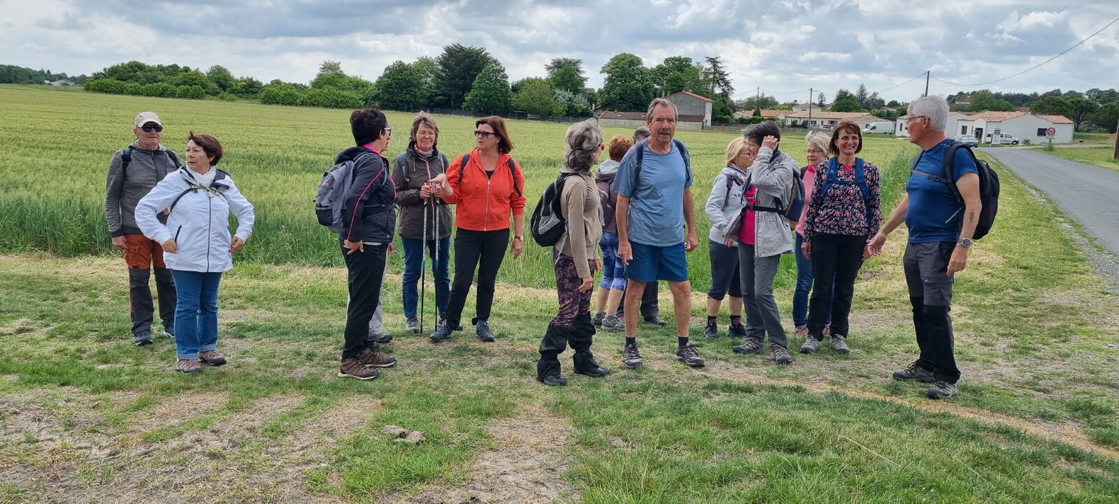 Serge nous emmène de bon pied dans Chaillevette. En partant du port de Chatressac, la rue du porche, celle l'Au Sur, nous parvenons dans les champs agricoles des Combes et rejoignons les Grandes Versennes puis Beauregard. Direction Les Auriaux, l'allée des Dames, Les Epinettes.