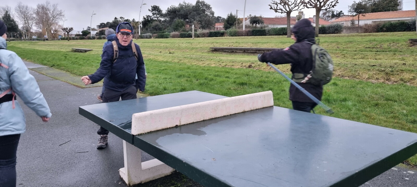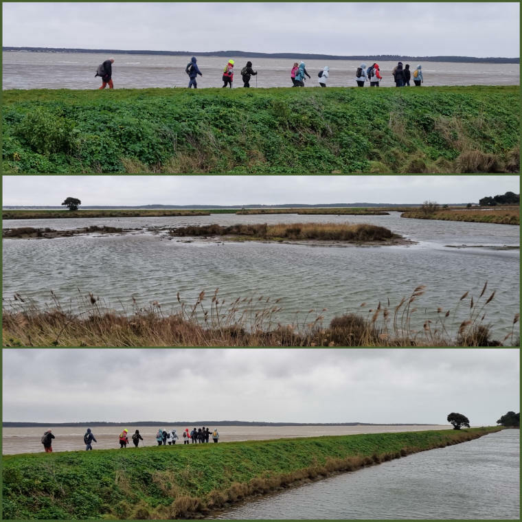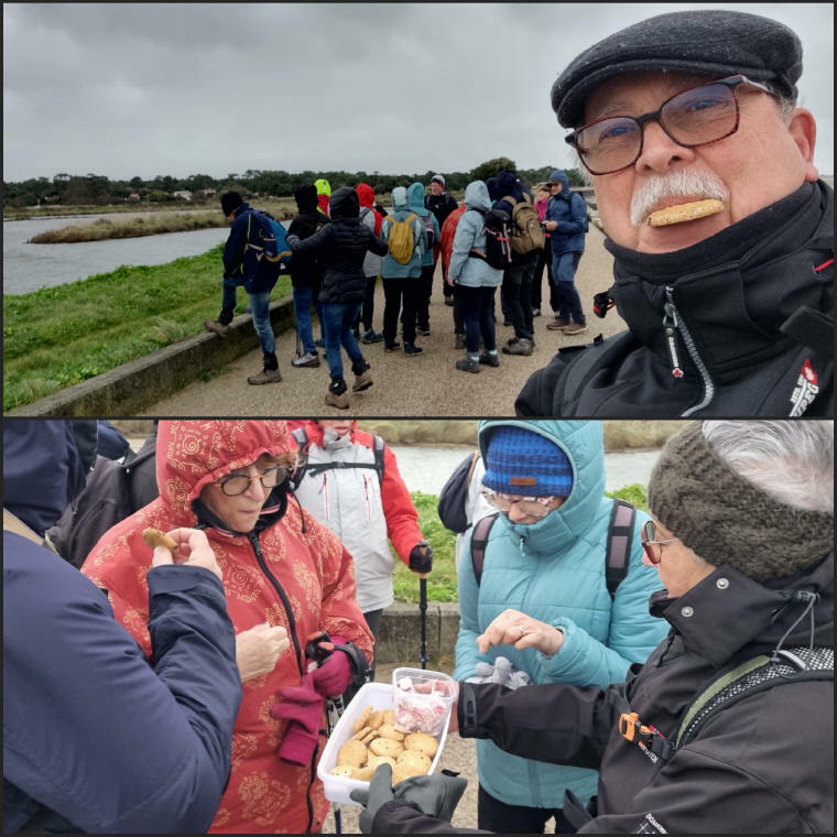 A l’abri du vent, Philipe nous fait passer par les sous bois de Monplaisir jusqu'au Marais des Bris. En sortie et sur la digue Pacaud, croquer des galettes charentaises et des loukoums glacés, offerts par AM (merci), est un autre sport sous les fortes rafales de vent.