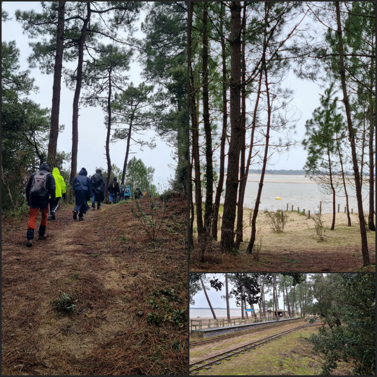 Passer ce coin dit 'Peu de l'Orage', la forêt reste dans le sombre et la pluie nous suit. Gare de Gatseau Plage, nous franchissons un coup de cul 😂 pour atteindre la Passe Forestière de la Vigne Américaine.