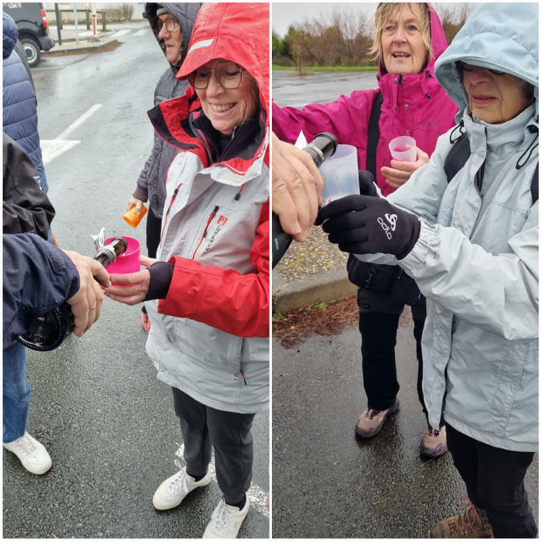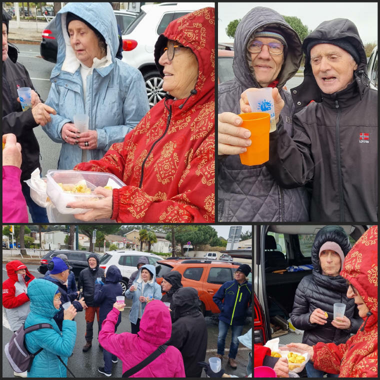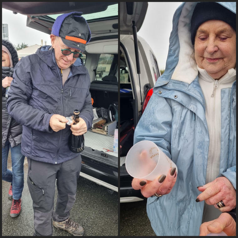 Après une attente, Zoé arrive et voilà que son coffre s'ouvre plein de bonnes choses. Tous les randonneurs chantent de leur bon coffre un joyeux anniversaire envers notre bon Philippe qui arrose tout cela d'un excellent Lys, des chouquettes et surtout des feuilletés saveurs du pesto.