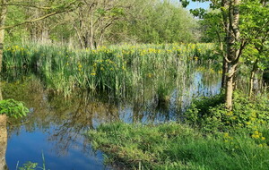 Enfin, nous partons pour s'arrêter attendre Miss DGA qui lutte avec les chausses qui appartiennent à son bonhomme😂😂😂. Et bé voilà, une fois ajuster à ses pieds, nous quittons le village à la rencontre de sa contrée par la rue de la Libération, ses chemins encore gorgés d'eau, de boue et ceux goudronnés servant à décrotter nos souliers. Chemin de la Blague du Monde, celui de la Pirouette, la Sarmazelle, le Domaine équestre La Rivière des Carlefours, les Chaumes où l'on a jamais vu autant d'iris jaune.