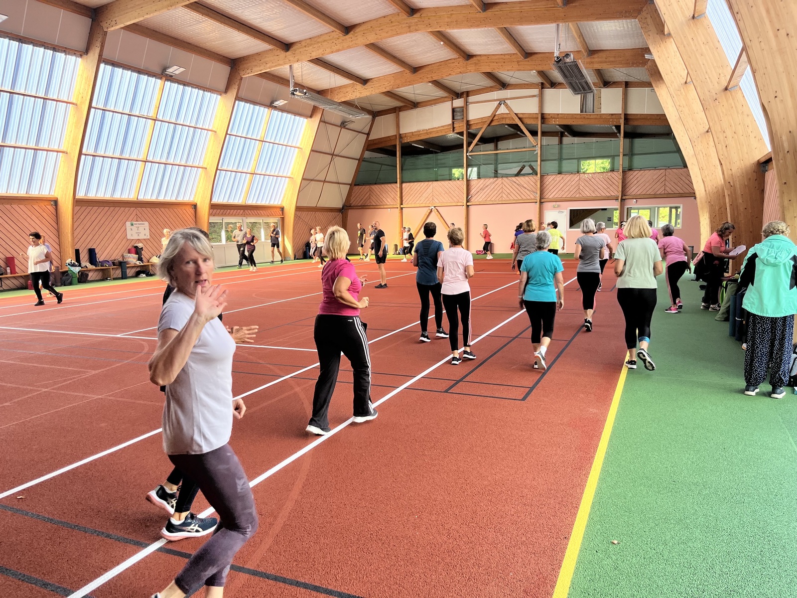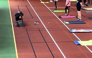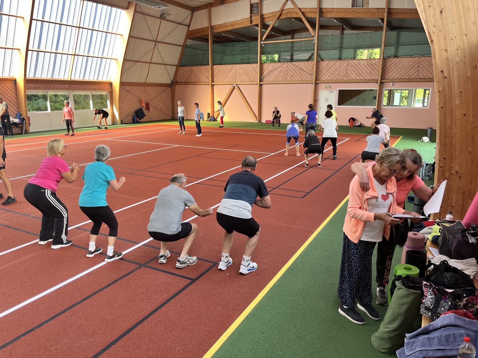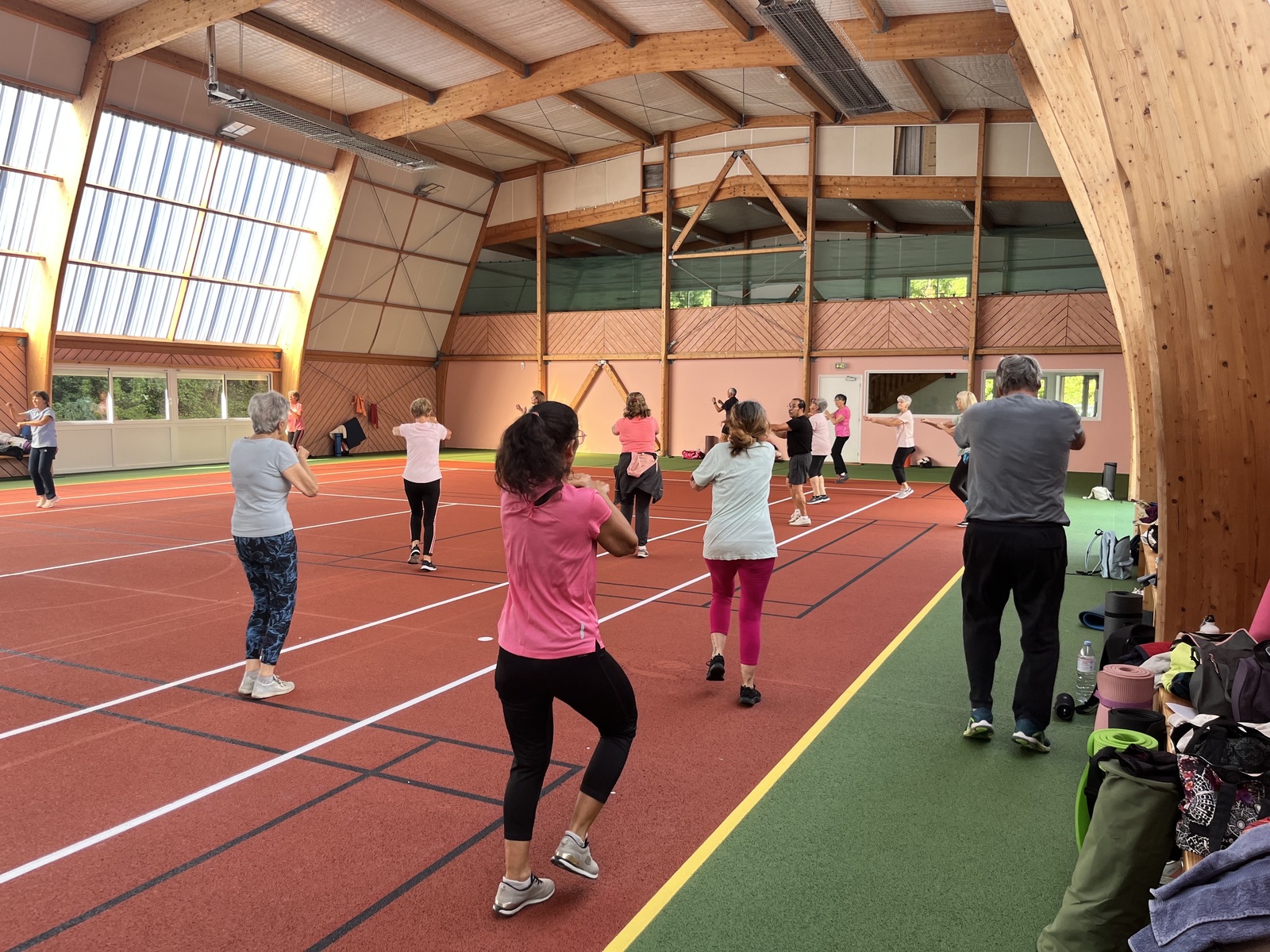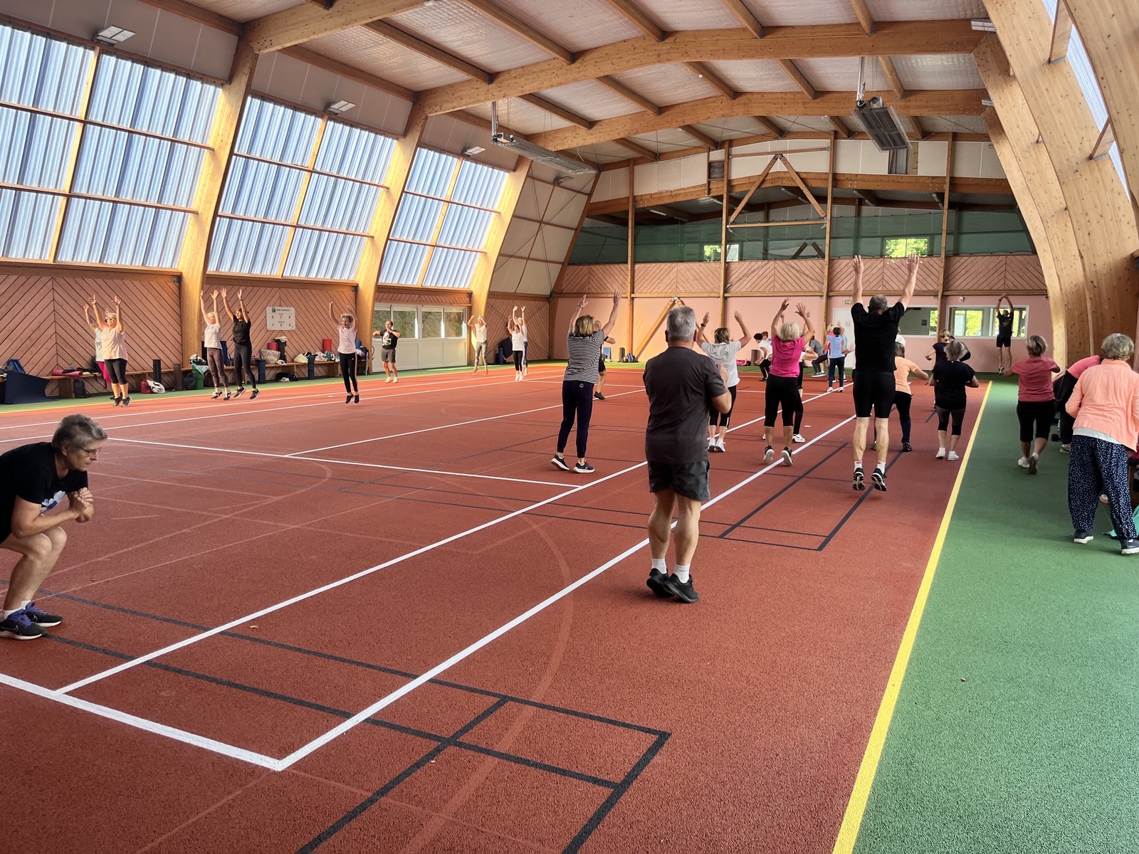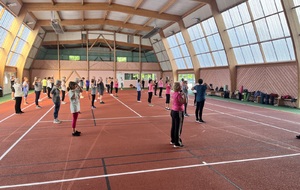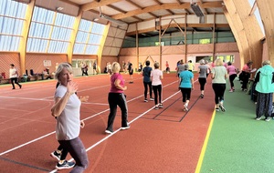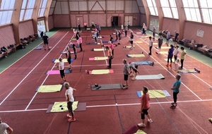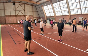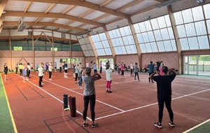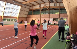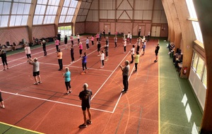 Photos prises lors de la phase des échauffements du cours de Pierrick.Les adhérents profitent du nouveau revêtement de la salle multisports qui vient d'être refait.