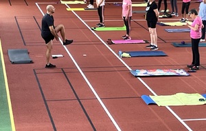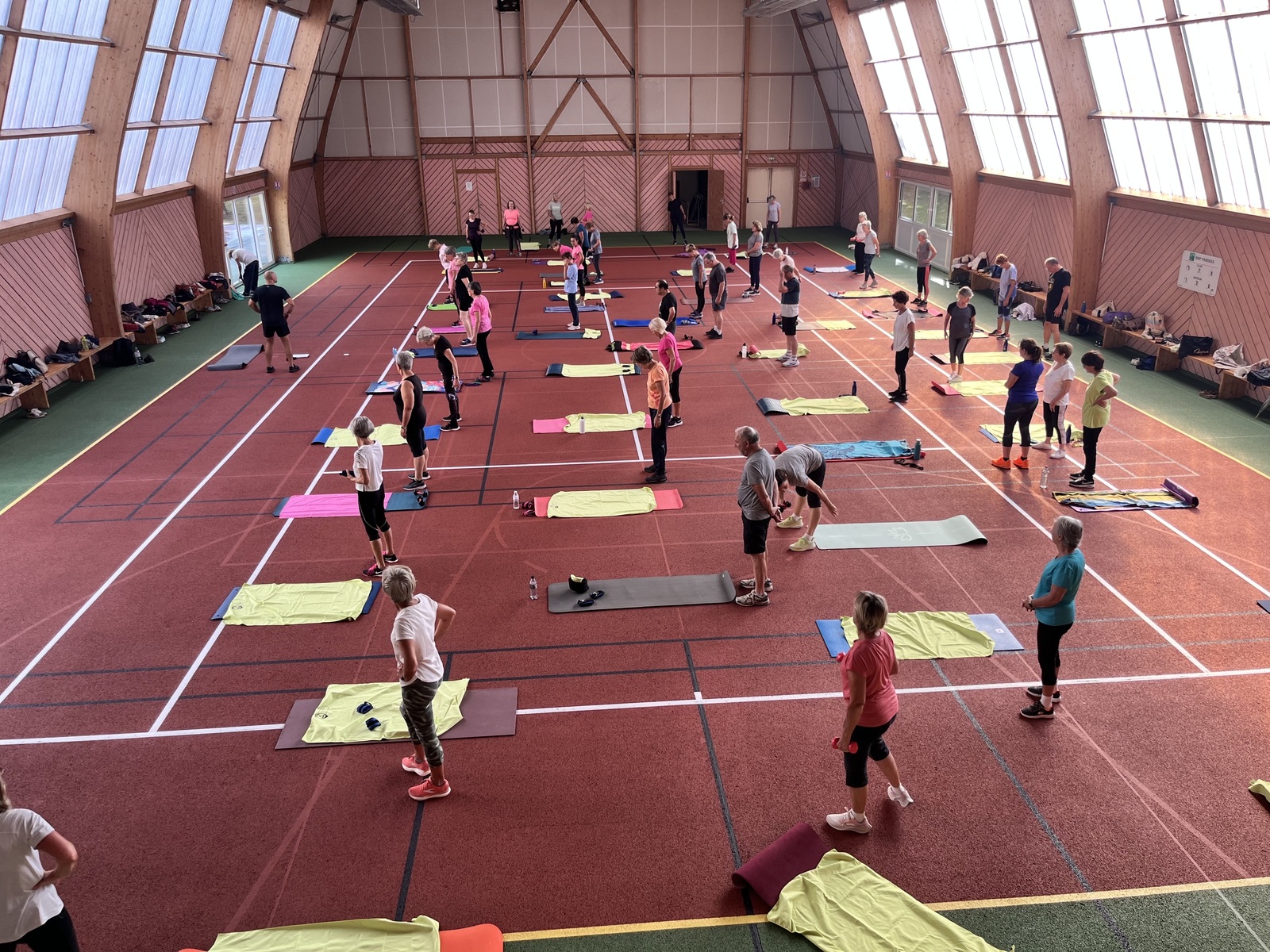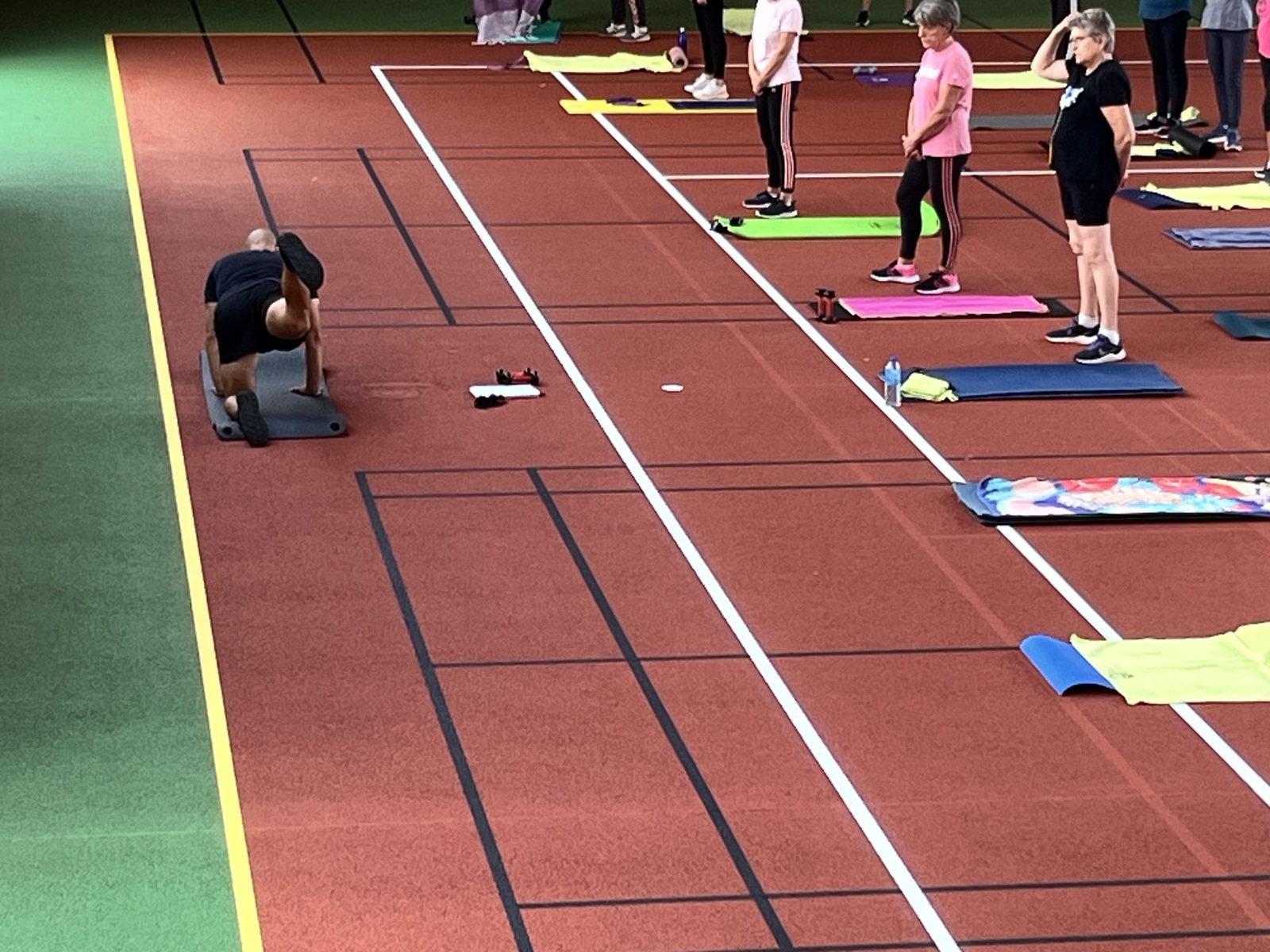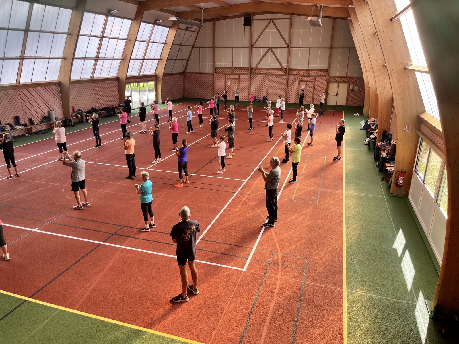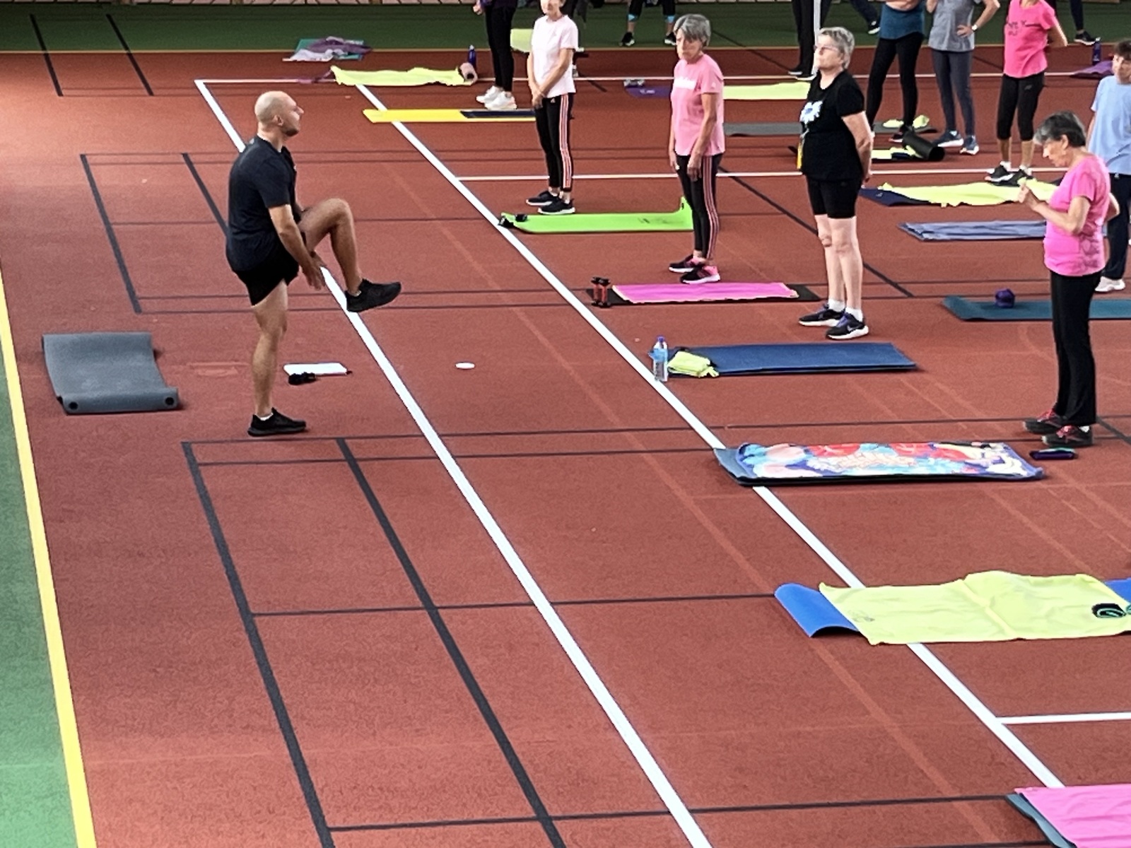 Photos prises lors de la phase des échauffements du cours de Pierrick.Les adhérents profitent du nouveau revêtement de la salle multisports qui vient d'être refait.
