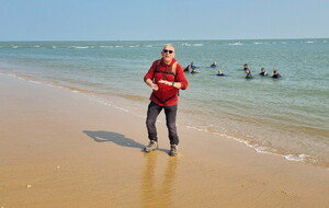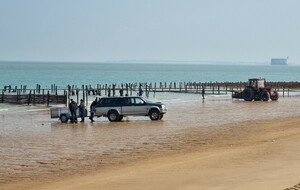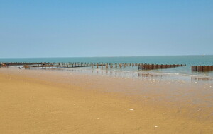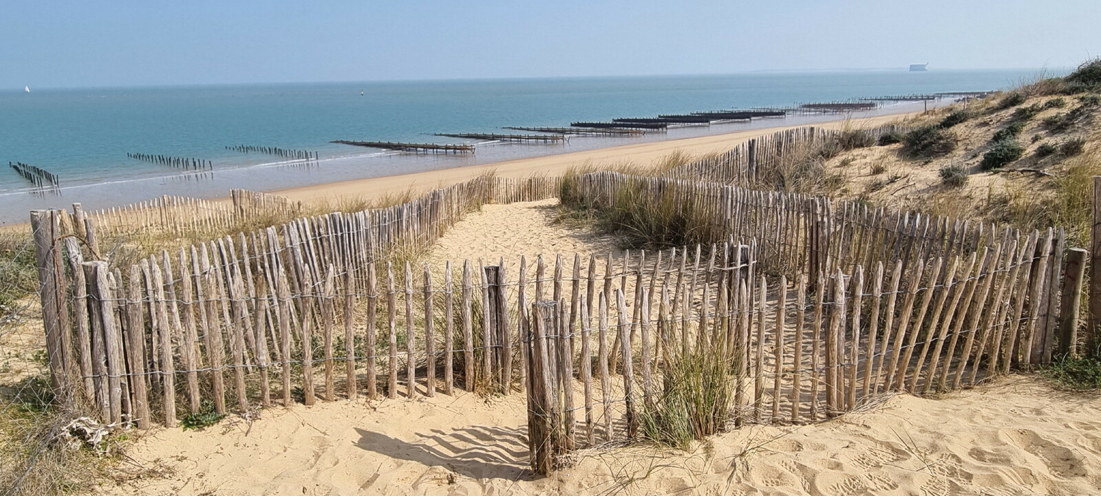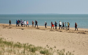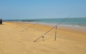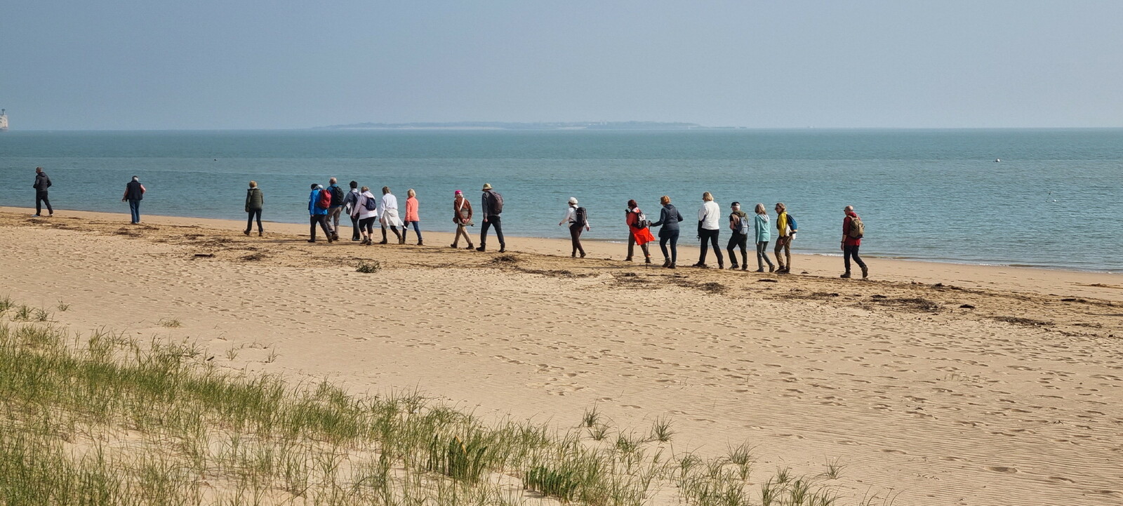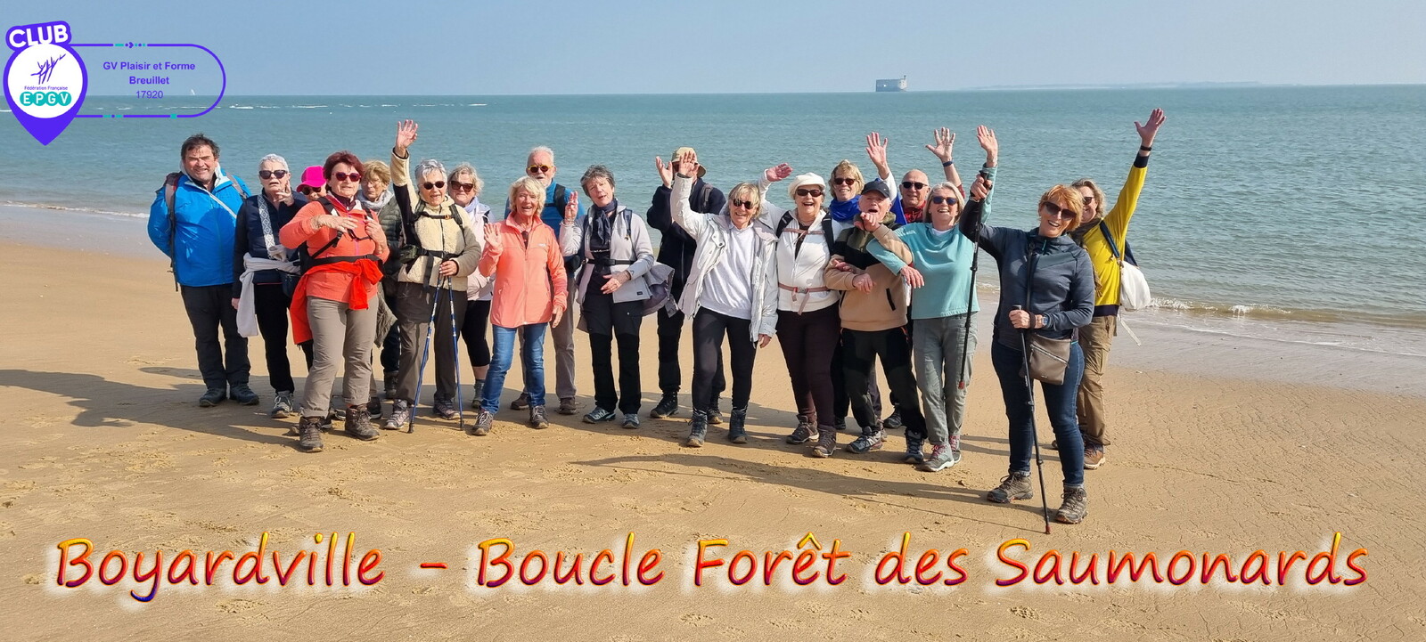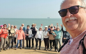 Démarrage par le Sentier des Hibiscus et plus loin nous rencontrerons des Cavaliers du Fort Boyard. Nous finirons par le sentier de la plage de St Georges d'Oléron et croiserons une équipe de longeurs et longeuses de bord de mer en plein effort. Passé la pointe des Saumonards s'alignent les pécheurs aux multilignes et les ostréiculteurs en plein boulot dans leur parc à huîtres.