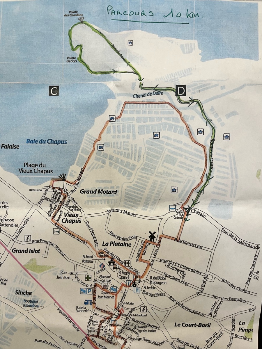 2 parcours proposés de 5 et 10 km de Bourcefranc vers la pointe des Chardons pour celui de 10km.