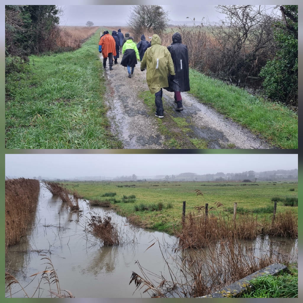 Bah ! De nouveau une rando sous la grisaille et un crachin bien Charentais. Après dégustation des sablés aux amandes sans gluten de Nadine, on y va le sentiment de faire front au temps. On gagne en sourire, en force dans le vent, en très bon randonneurs, pas de jambe de bois.