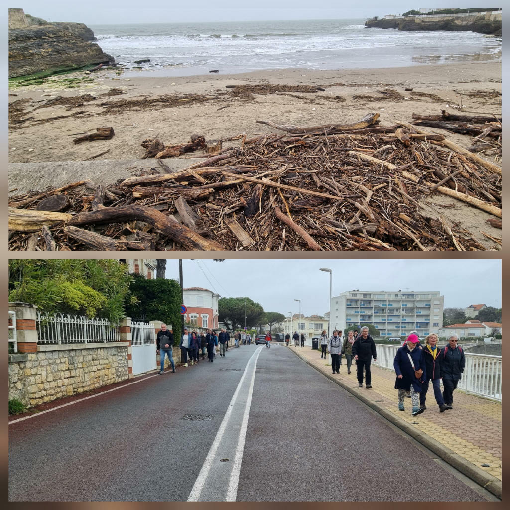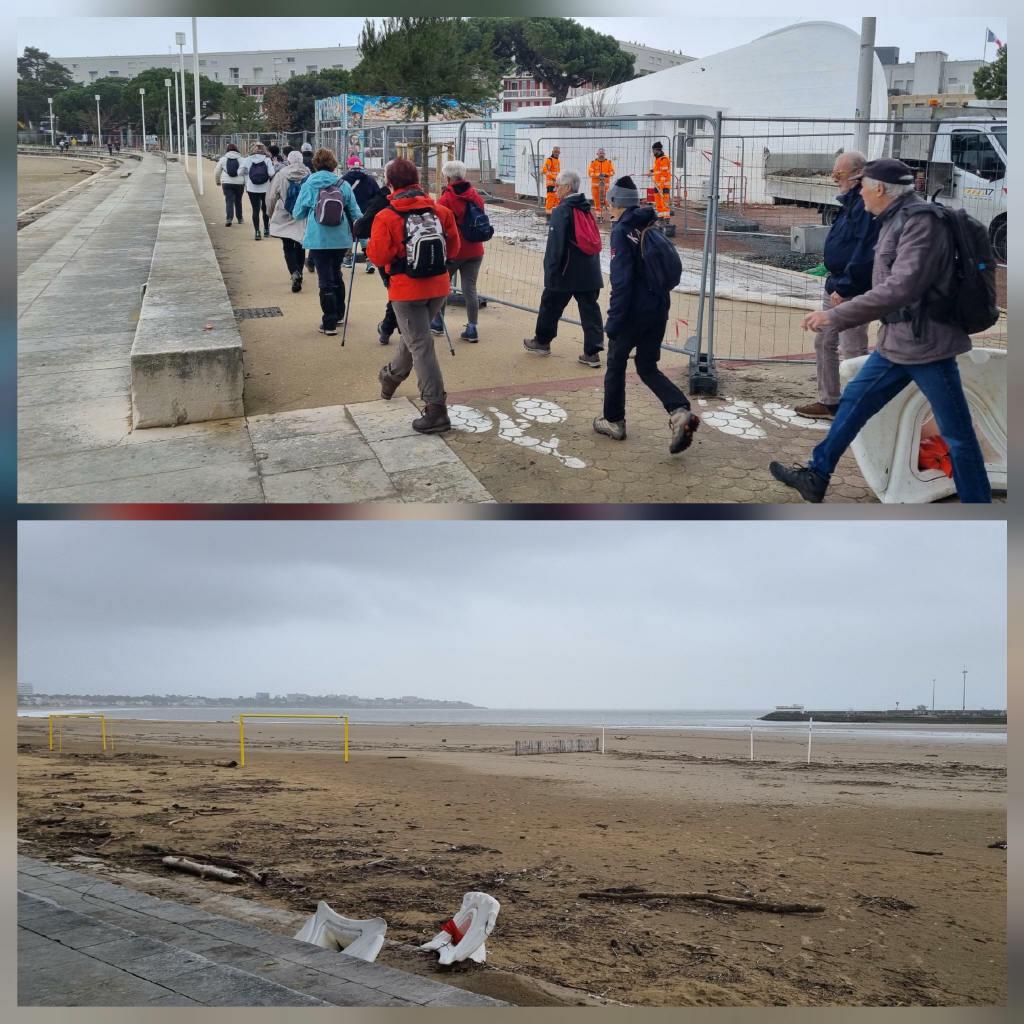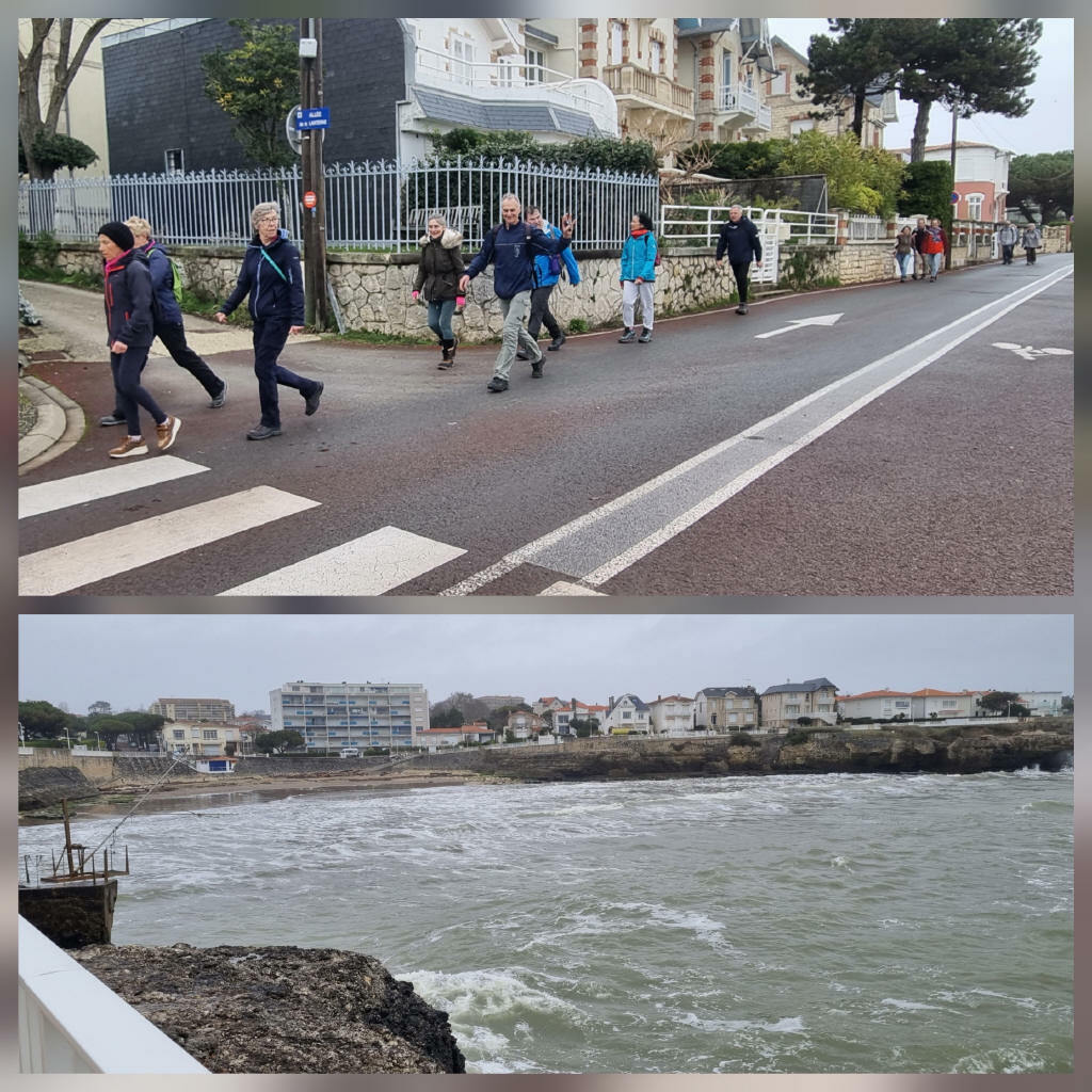 Ah, encore détourner par les travaux de la corniche de la Thalasso. On fonce donc autrement vers la plage du Chaix et rejoignons celle du Pigeonnier. Sur le boulevard de la Côte d'Argent qui longe la mer déchainée, le groupe des sportifs a difficulté de nous doubler (et avec le vent dans le dos svp, 😂😂😂). Le boulevard nous mène aux baignoires de Pontaillac, sa grande plage et son Casino.