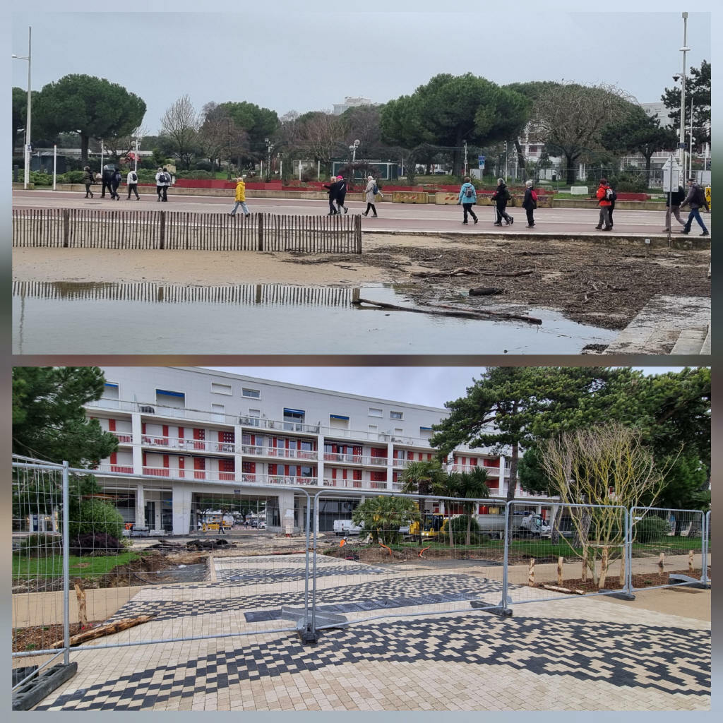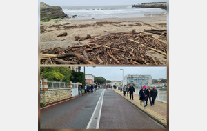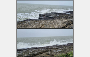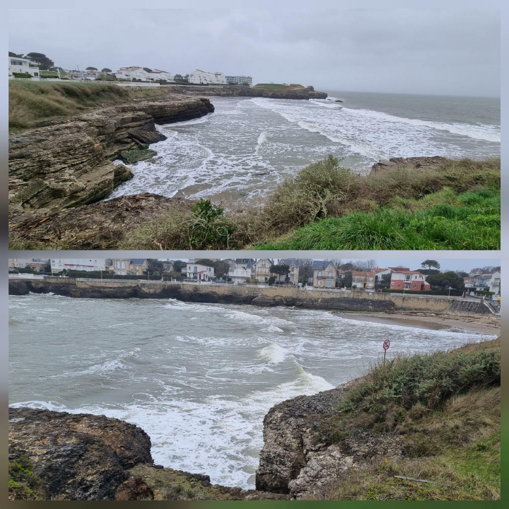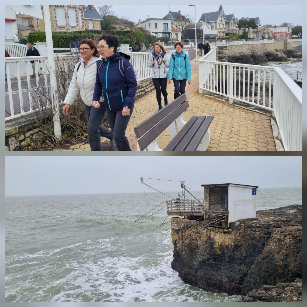 Ah, encore détourner par les travaux de la corniche de la Thalasso. On fonce donc autrement vers la plage du Chaix et rejoignons celle du Pigeonnier. Sur le boulevard de la Côte d'Argent qui longe la mer déchainée, le groupe des sportifs a difficulté de nous doubler (et avec le vent dans le dos svp, 😂😂😂). Le boulevard nous mène aux baignoires de Pontaillac, sa grande plage et son Casino.