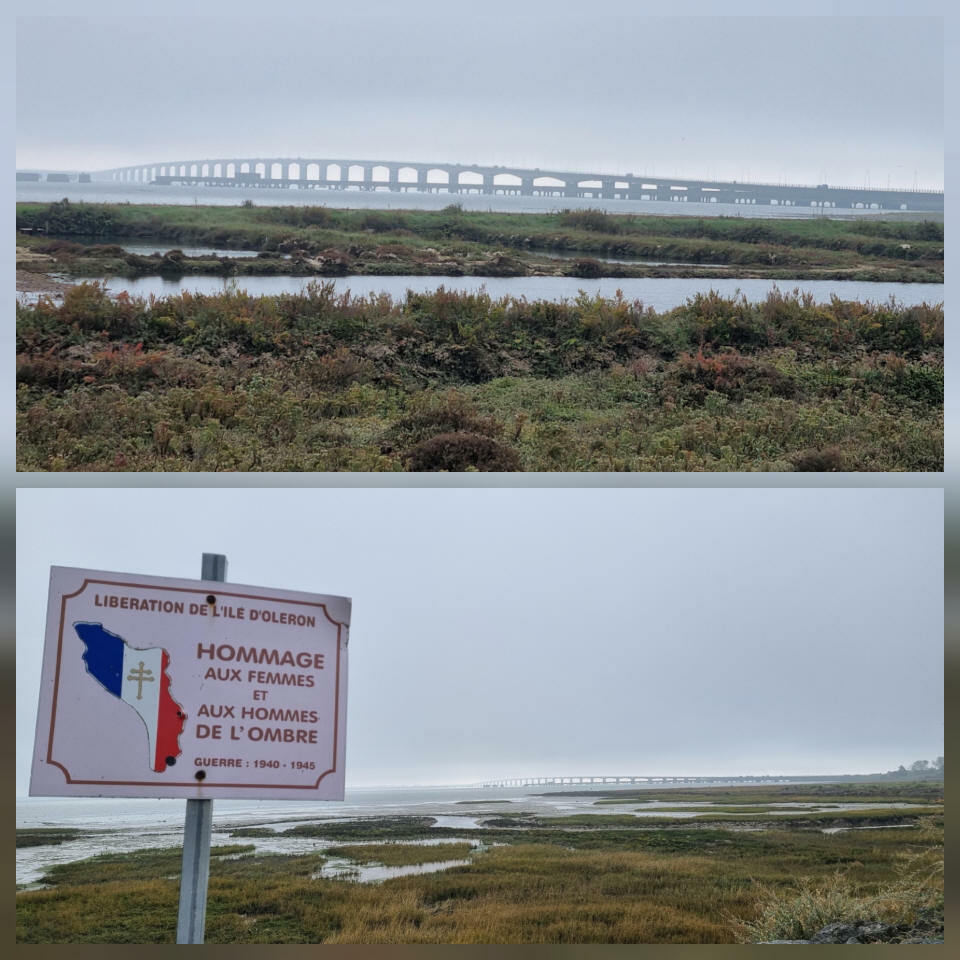 Nous partons pour un parcours de 13,5km sans trop de retard pour notre arrivée. Purée ! Ce matin le froid s'est installé. Les 10° nous obligent comme même à partir couvert, fini l’été ! La marée est haute, le plafond devient bas et en retour, l'inverse s’installe. Nous démarrons par la citadelle Vauban et le circuit des remparts avec vue sur Fort Louvois et le Pont d'Oléron. Après avoir passé l'Arbre de Richelieu, l'Arsenal et la porte Royale, arrêt culturel à la porte des Pêcheurs, passage devant la Caserne Boileve et nouvel arrêt culturel à la Fontaine de la place de la République en plein marché.