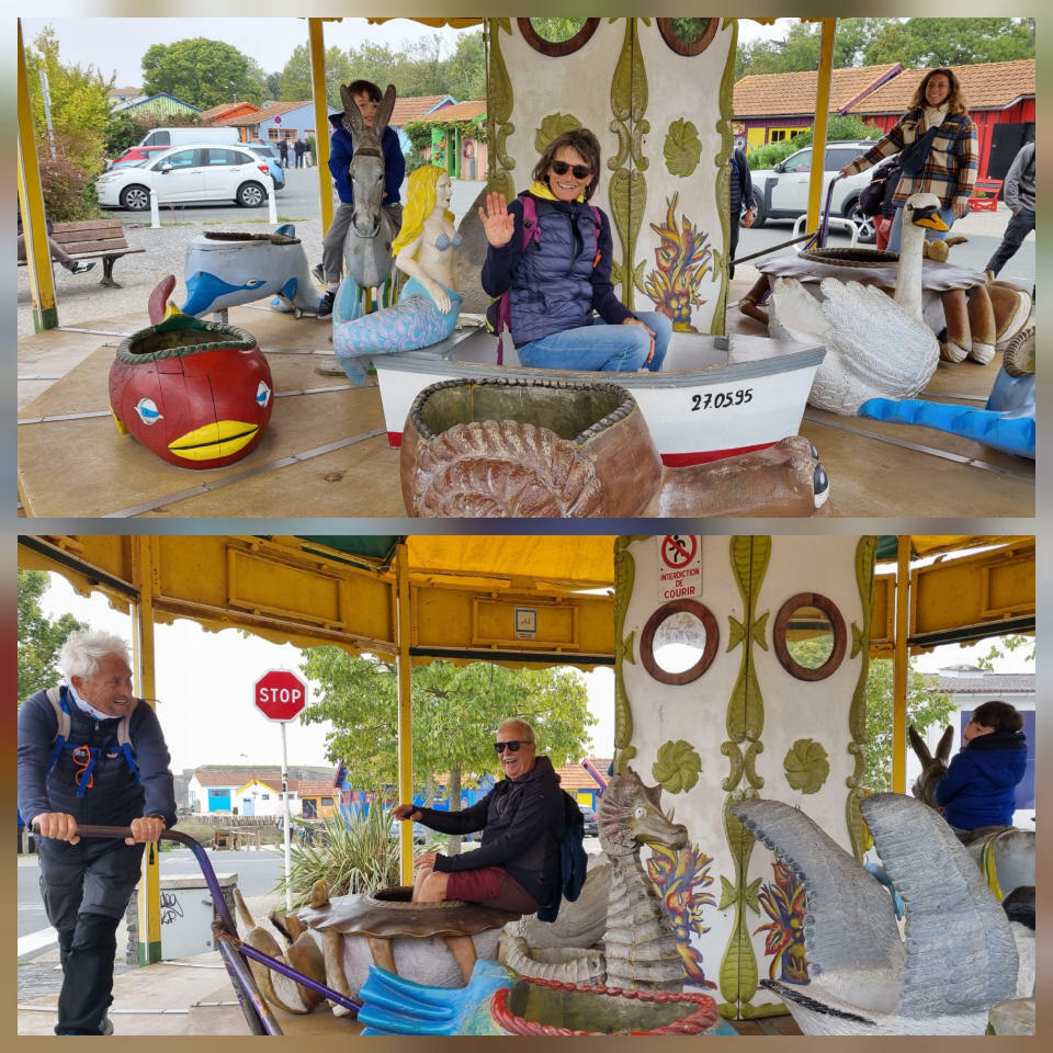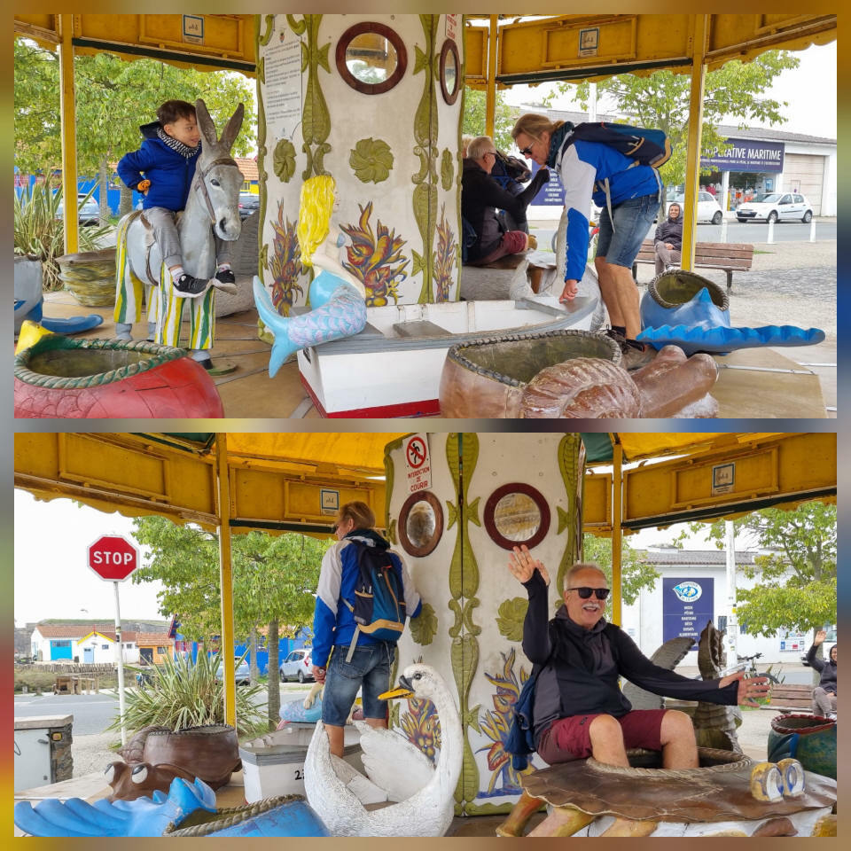 On s'éclate sur le manège écologique en bois réalisé de 2007 à 2010 par Frédéric NOBILI, sculpteur. Nous terminons par le bassin d’Echouage et le bassin à Flot.