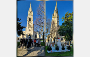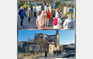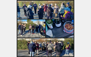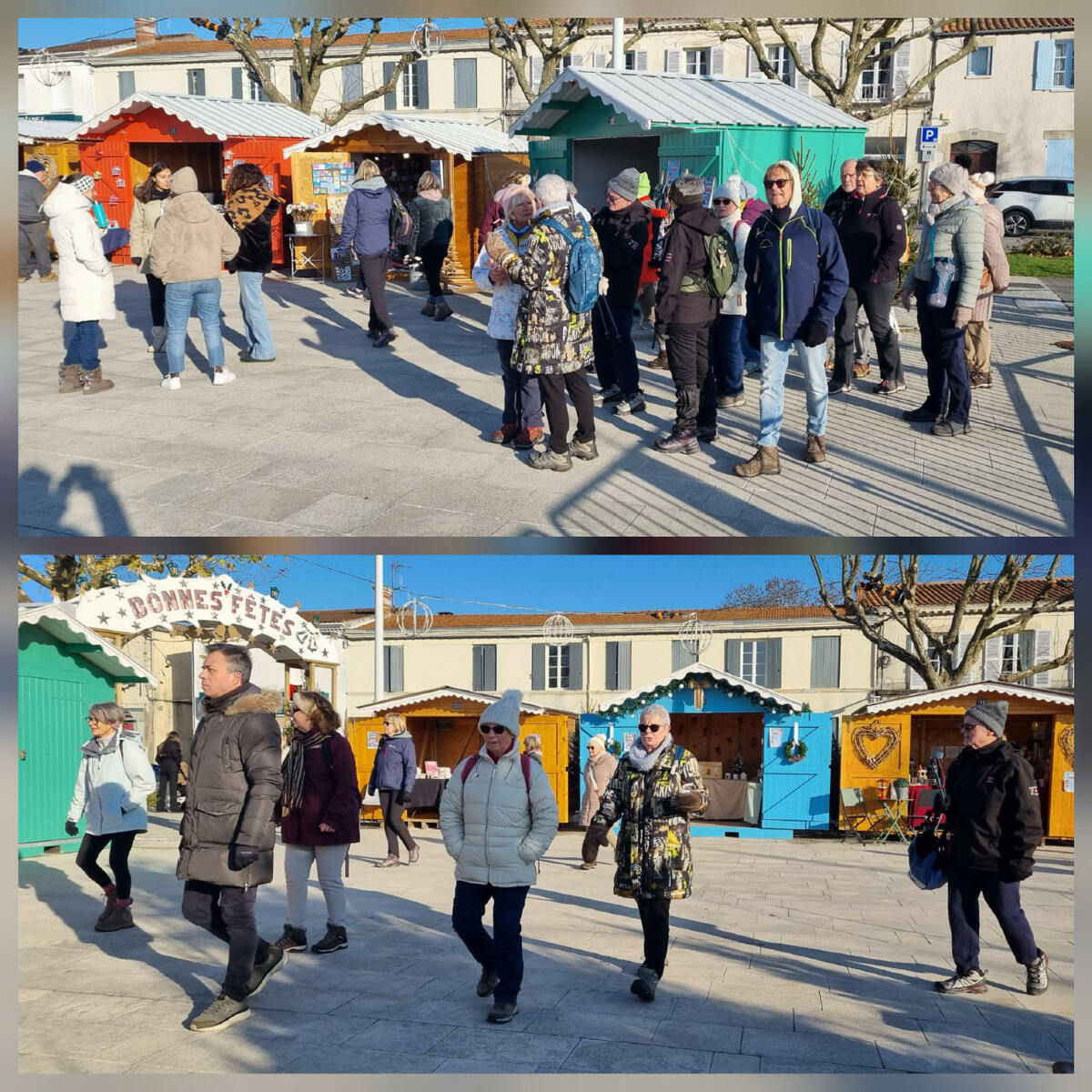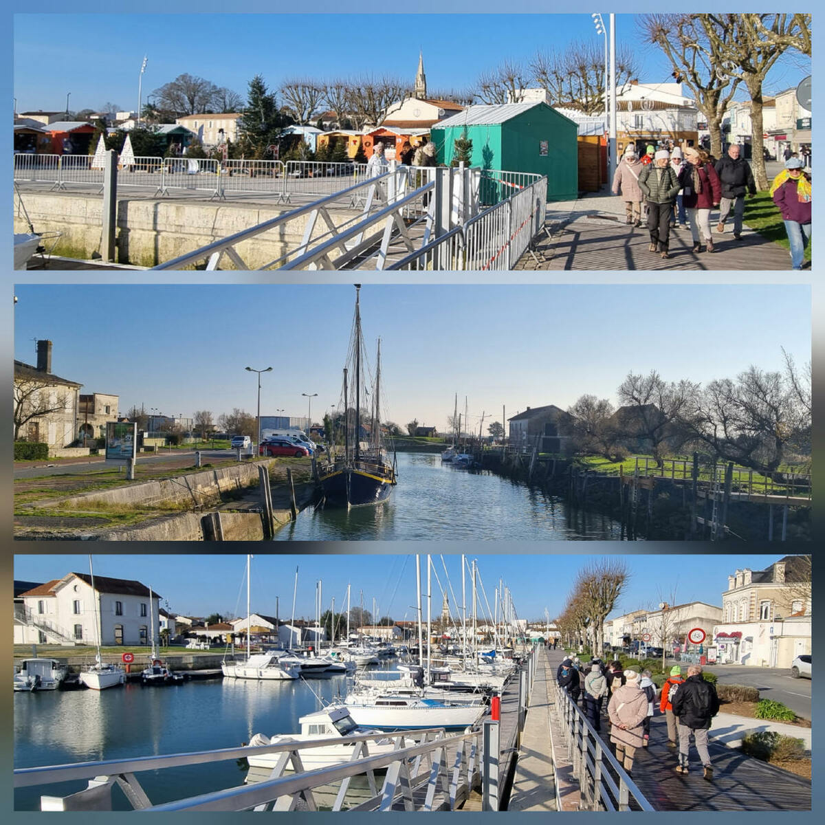 Bien sûr, petits cakes de Françoise et bonbons gingembres de Jocelyne accompagnent notre 1er arrêt. Nous poursuivons et sortons par le chemin de la Garde puis les rues de la Tremblade. Nous ferons un seul demi-tour car le pont piéton de l’écluse du port est ouvert et nous n'avons aucune intention de traverser à la nage. Par contre, traversons sans soucis le marché avec les petites cabanes de Noël, aux bonnes senteurs de vin chaud et friandises.