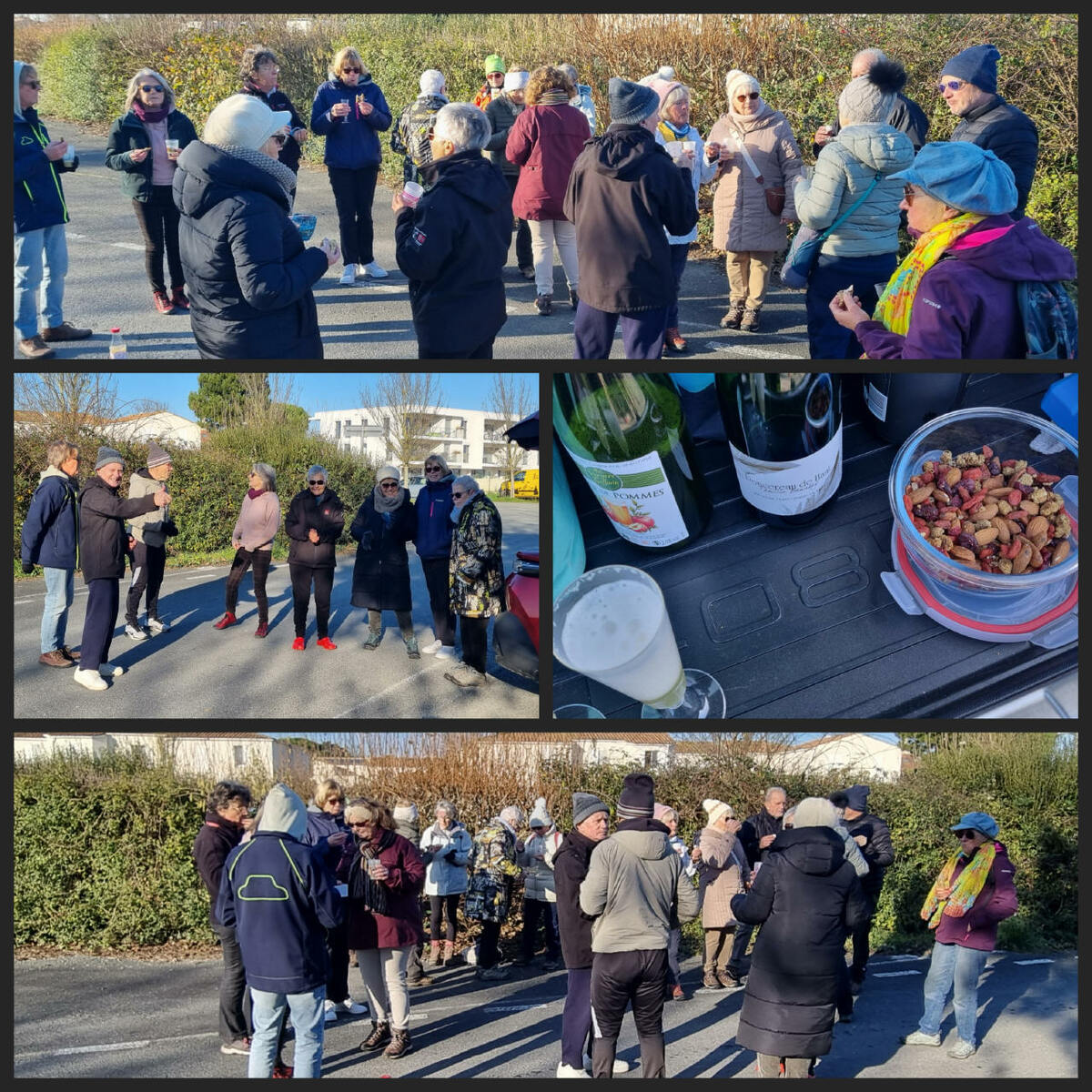 En ce dernier dimanche de randonnée 2025, nous avons pris les rênes pour faire péter quelques bouchons de pétillante et cidre en dégustant cake jambon ou noisettes/chèvre. Tient, on a bien fait de croiser Nadine et Gilles qui nous ont rejoint avec quelques autres bouchons à faire sauter.